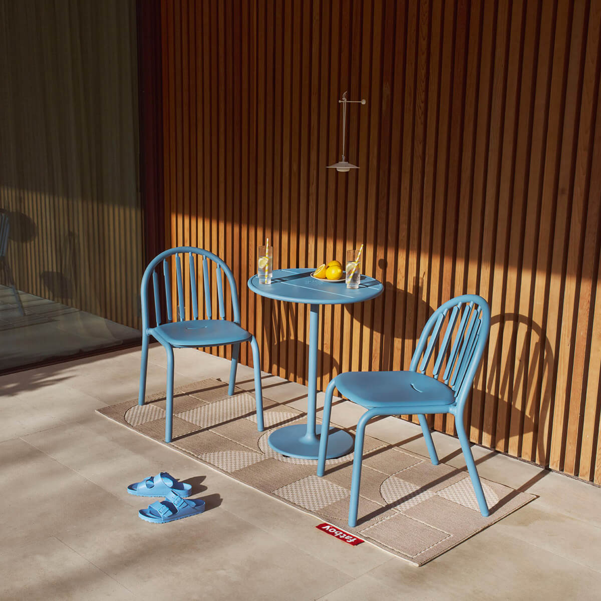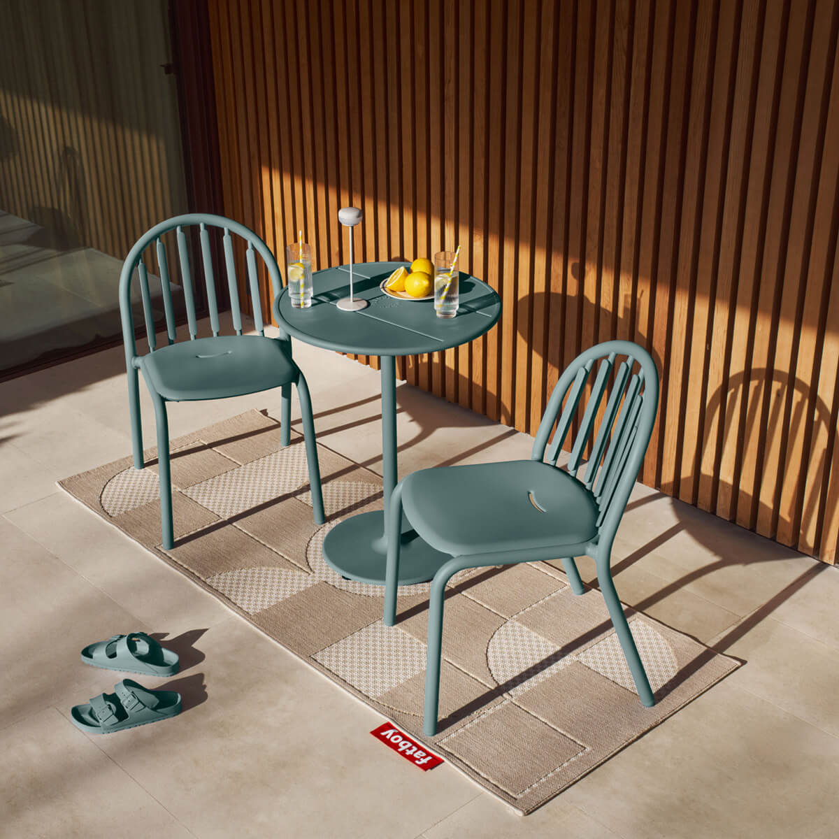 Auch optisch überzeugt der Tisch mit seiner ausgewogenen Mischung aus moderner Klarheit und klassischem Bistro-Charakter. Kombiniert mit Fred’s Chairs oder Fred’s Armchairs entsteht ein stimmiges Ensemble, das Balkon und Terrasse sofort aufwertet. Ob minimalistisch, urban oder gemütlich inszeniert – der Tisch fügt sich vielseitig in unterschiedliche Outdoor-Konzepte ein.