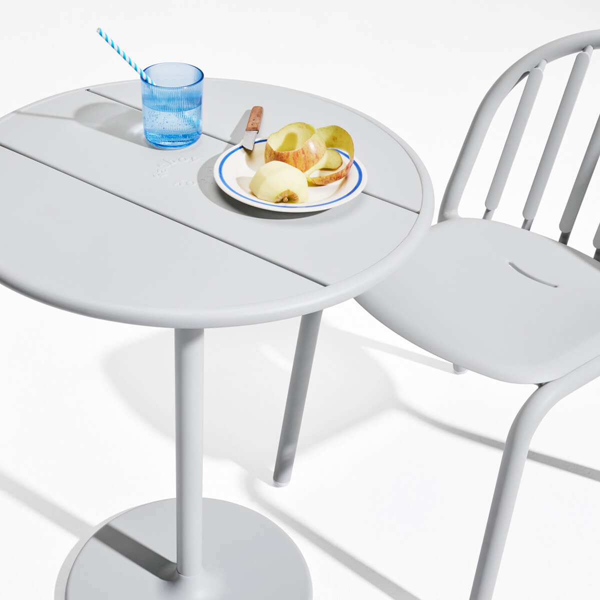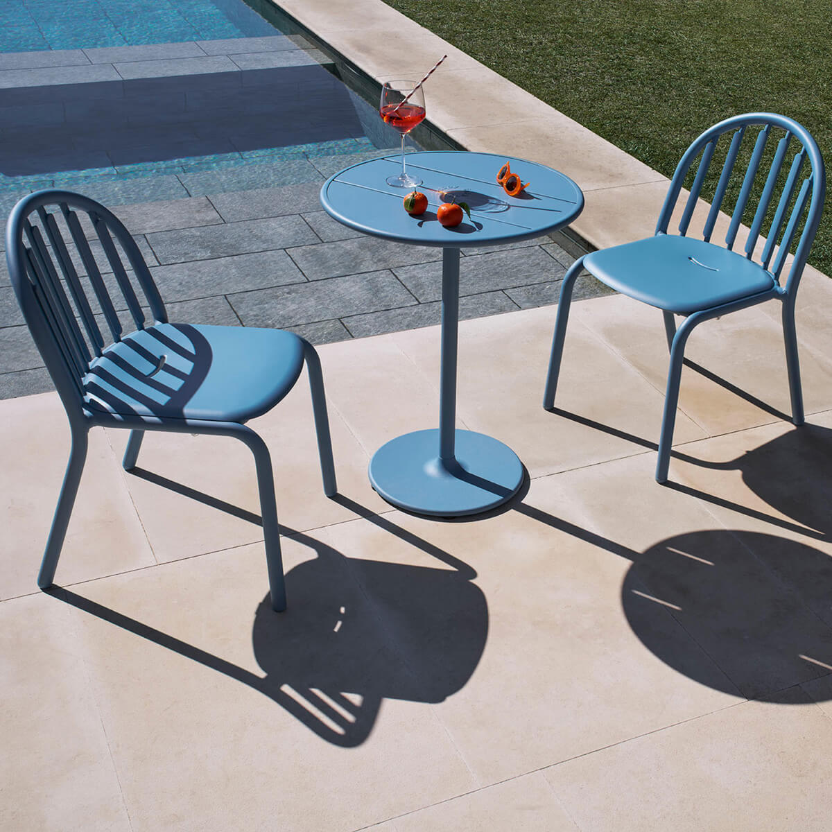 Gefertigt aus beschichtetem Aluminium und Stahl, ist der Outdoor-Tisch bestens für das Leben im Freien gerüstet. Die Materialien sind wetterbeständig und pflegeleicht, sodass der Tisch das ganze Jahr über draußen stehen bleiben kann. Regen, Sonne und wechselnde Temperaturen meistert er souverän, während seine Oberfläche mit einem Tuch schnell wieder sauber ist. So verbindet der Tisch Bistro-Ästhetik mit einer Alltagstauglichkeit, die im Outdoor-Bereich besonders geschätzt wird.