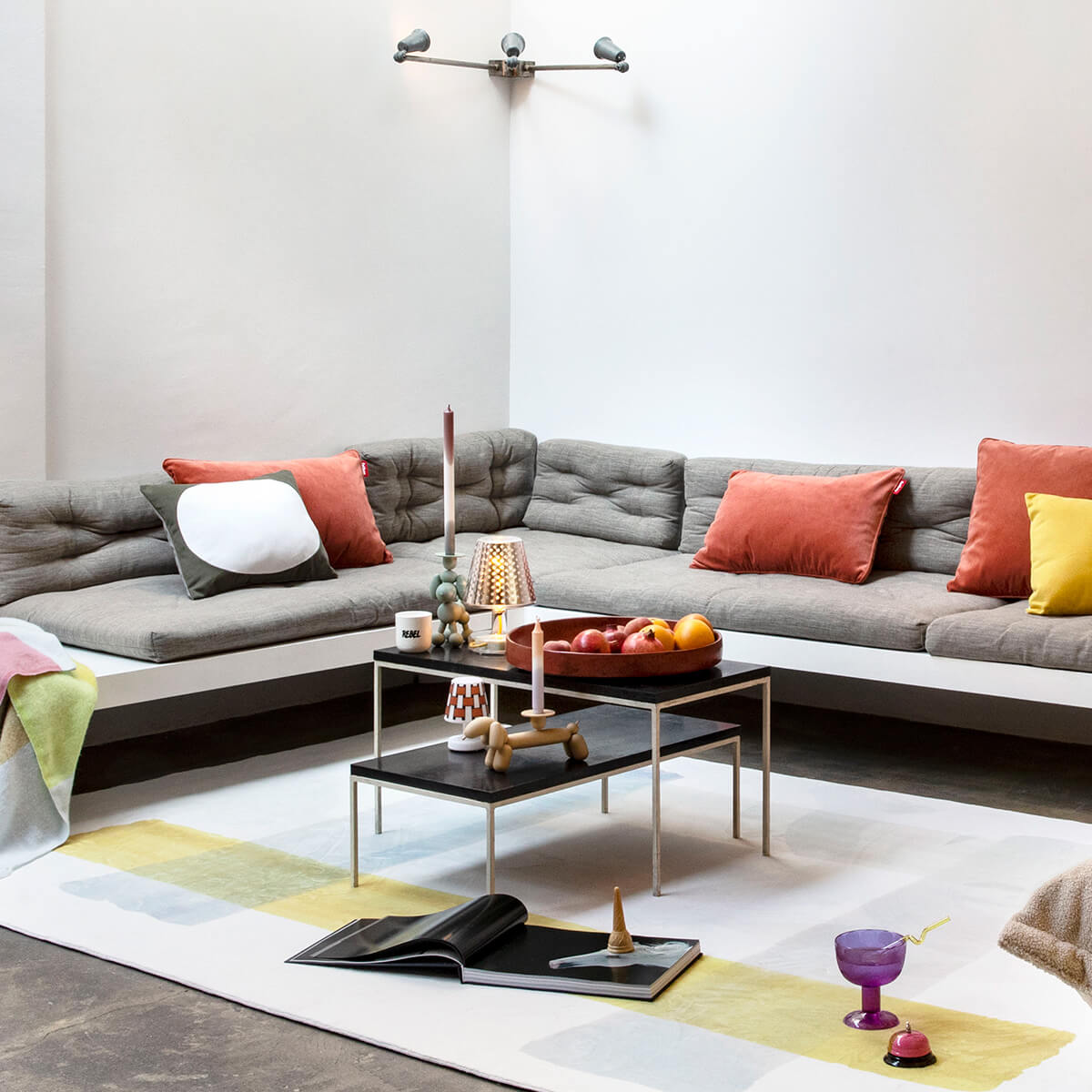 - Farbenfrohes Motiv, das an gewebte Körbe denken lässt