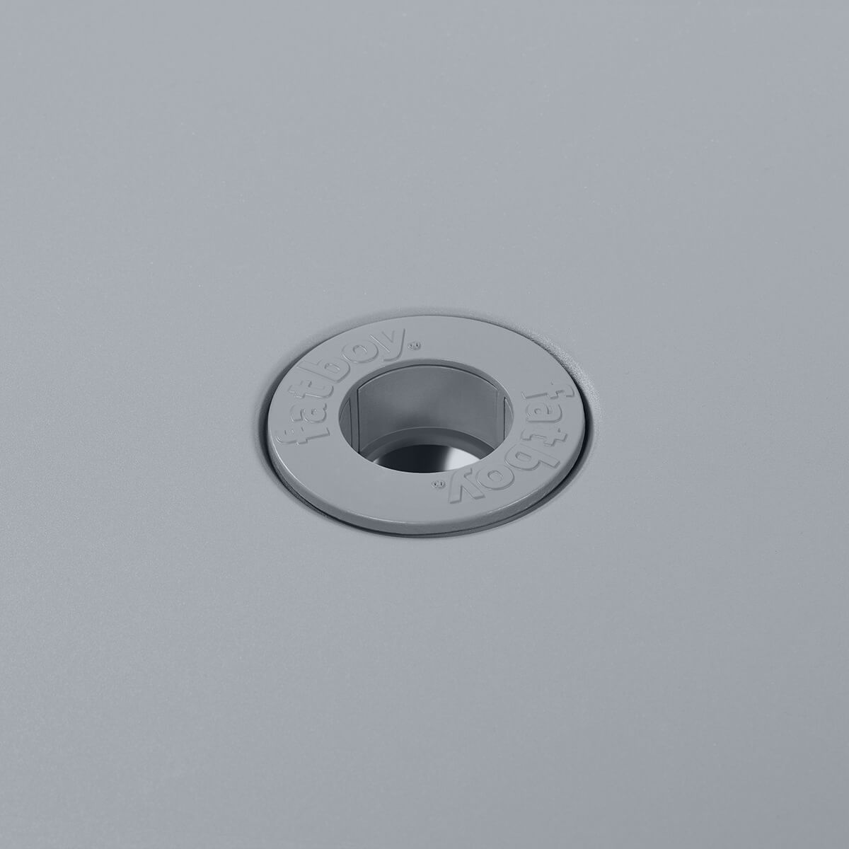 - Die Öffnung in der Mitte (Größe: 41 mm) kann als Schirmhalter dienen oder mit dem 3-armigen Fatboy Toní Kerzenständer kombiniert werden