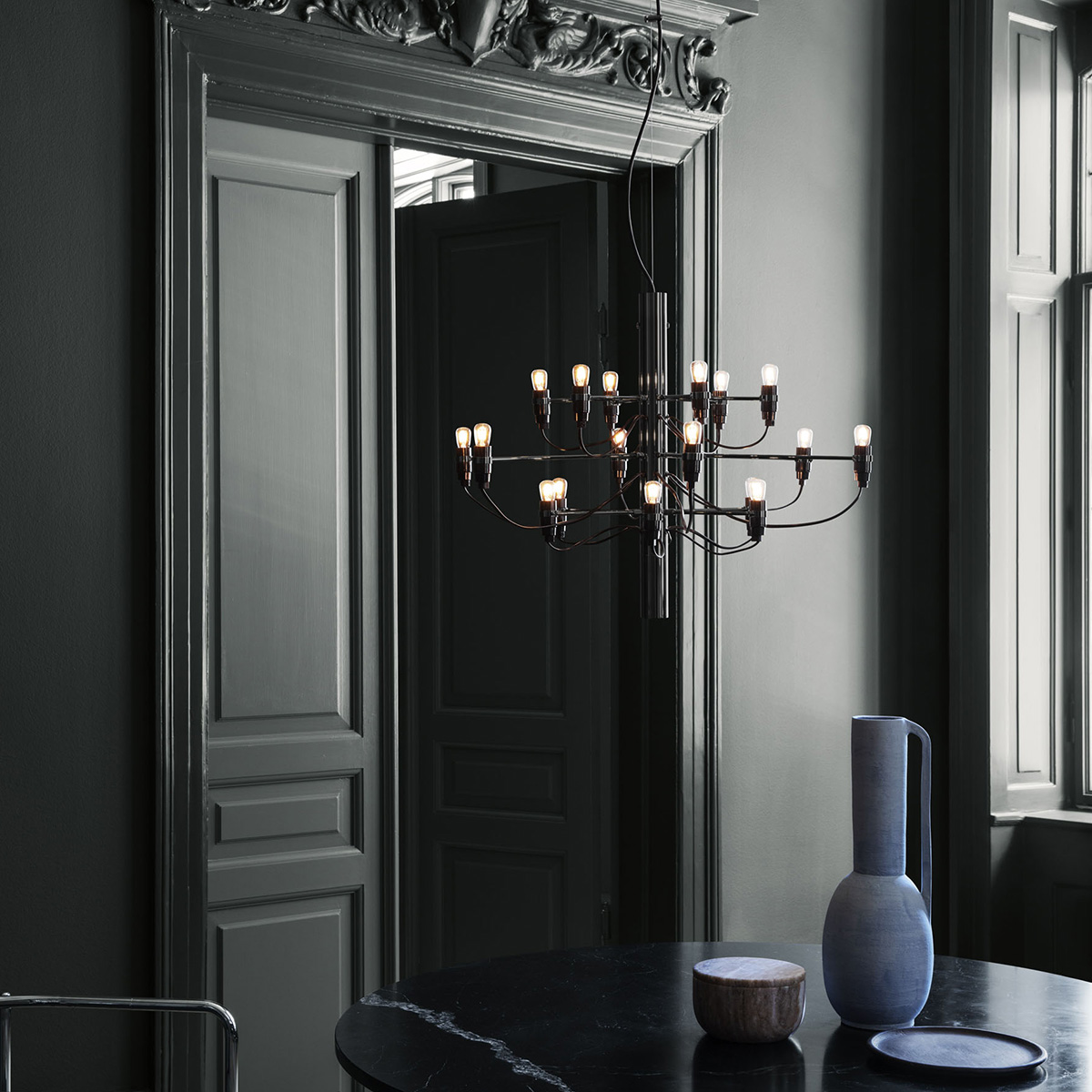 The 2097/18 Chandelier from Flos is an iconic luminaire characterized by its minimalist structure and impressive design. Created by renowned designer Gino Sarfatti, it embodies the innovative, futuristic spirit of the mid-20th century design movement.