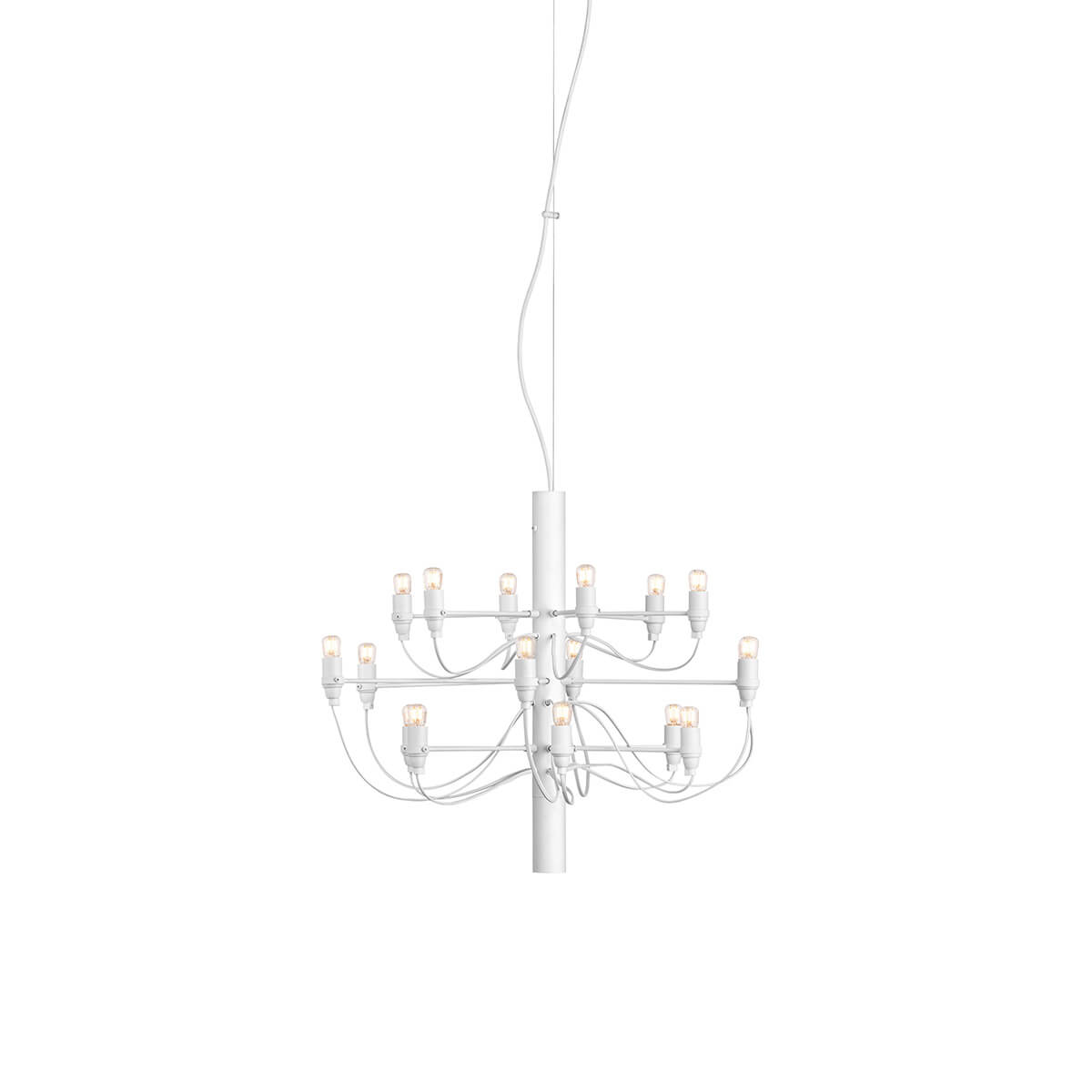 The 2097/18 Chandelier from Flos is an iconic luminaire characterized by its minimalist structure and impressive design. Created by renowned designer Gino Sarfatti, it embodies the innovative, futuristic spirit of the mid-20th century design movement.