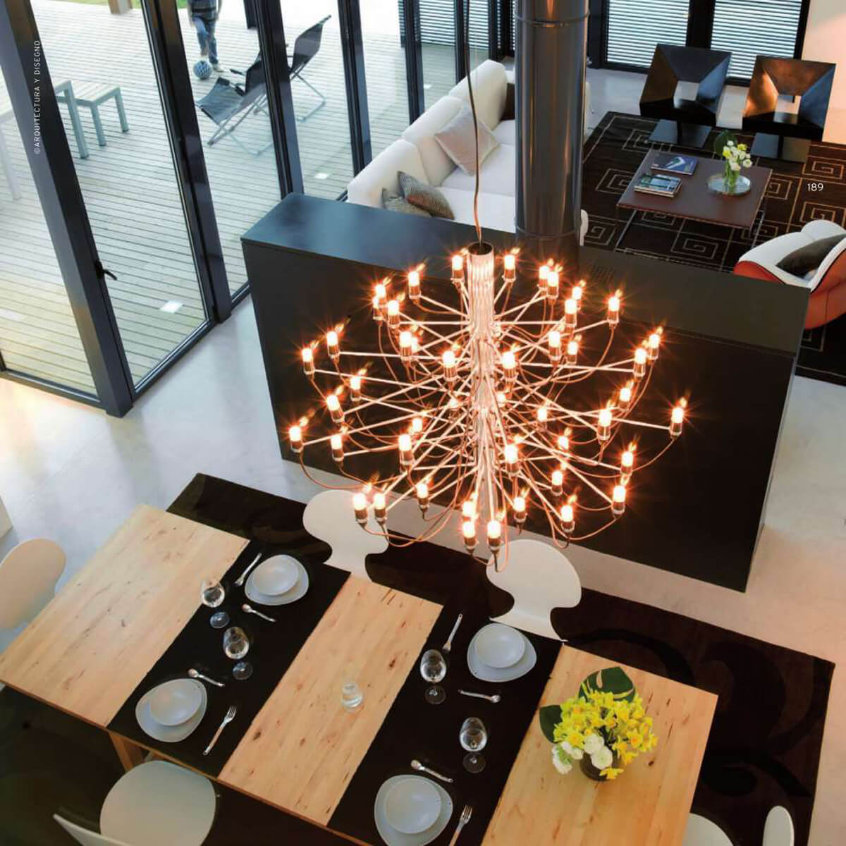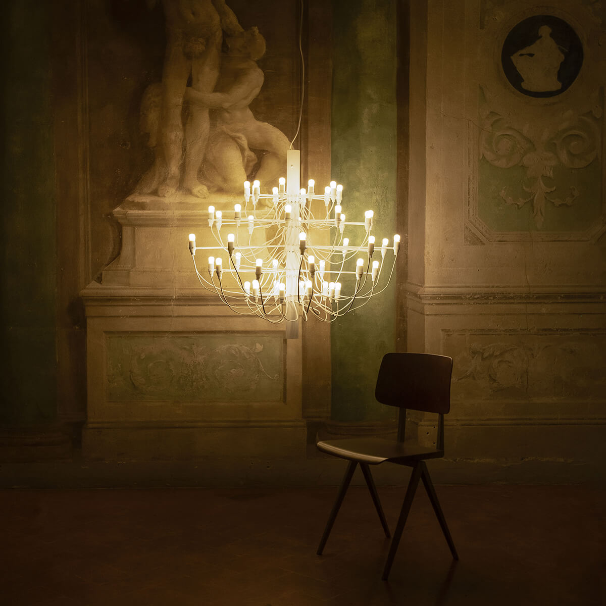 Alternatively, you can also fit the Flos 2097/50 pendant light with fridge bulbs (IBT E14, max. 15 watts). This flexibility allows you to choose the ideal lighting for your room. No matter which lamps you choose, the 2097/50 Chandelier from Flos is sure to make a statement in your home and create an atmosphere of sophistication and elegance.