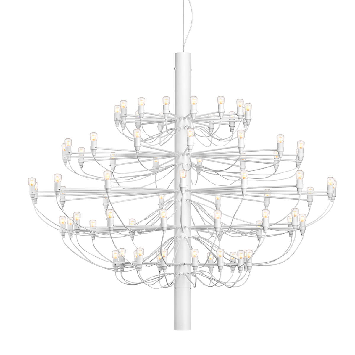 Its design is a reinterpretation of the original 2097 pendant lamps created by Gino Sarfatti. Just like its predecessors, the Flos 2097/75 impresses with its clear lines and stylish surfaces. Each of the delicate brass arms, which seem to extend chaotically in all directions, are fitted with energy-efficient LED lamps that produce a soft, flattering light.