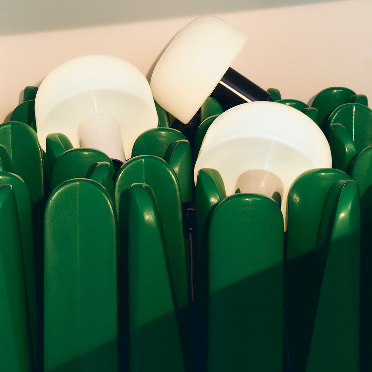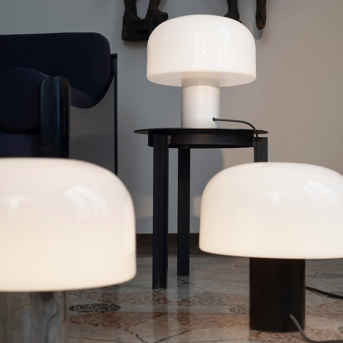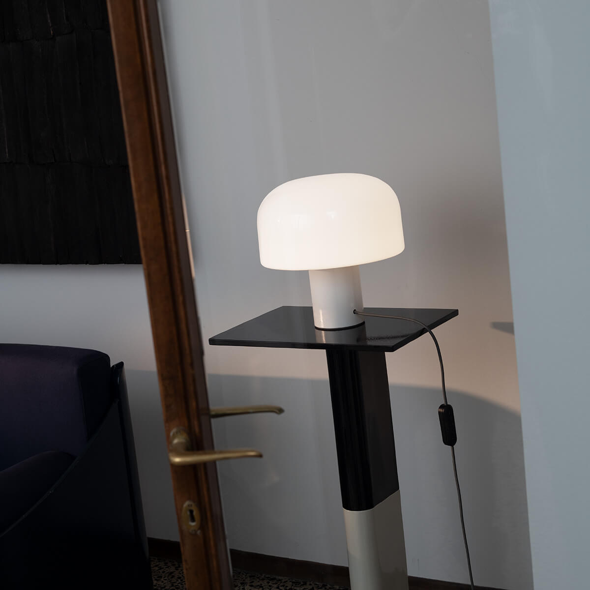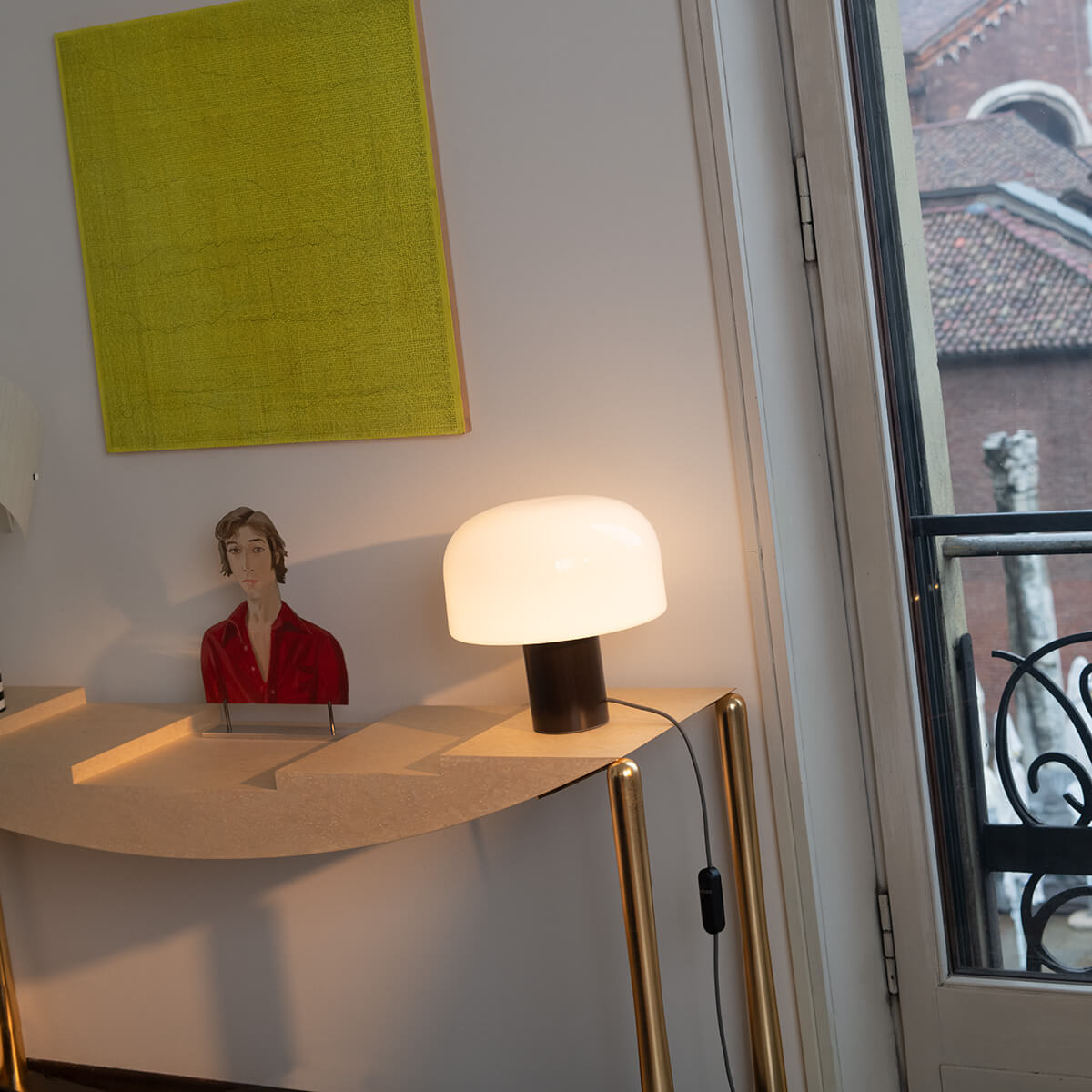 The heart of the Bellhop Glass T is its elegant lampshade, which is made of multi-layer triplex opal glass . This innovative technology, which was developed in collaboration with the Flos R&D department, ensures gentle light diffusion without glare. The clever variation of the layer thicknesses creates a soft, diffuse light that bathes the room in a cozy atmosphere.