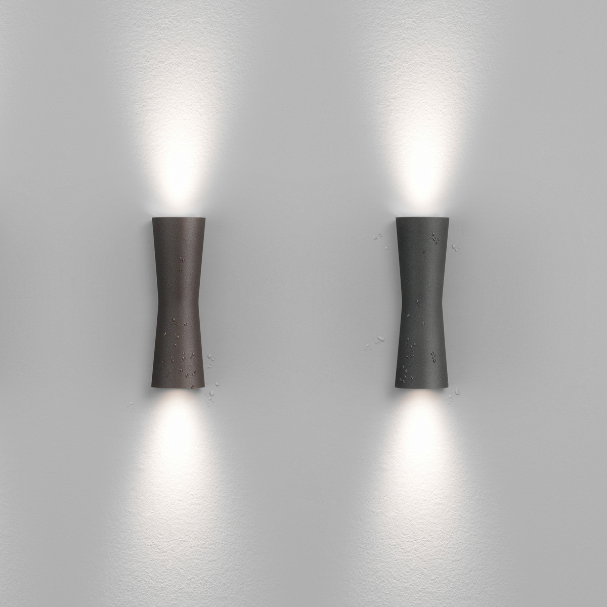 Due to its higher protection class of IP55, the Flos Clessidra LED Outdoor wall light is suitable for outdoor use, where it creates decorative beams of light near house entrances or patio areas.