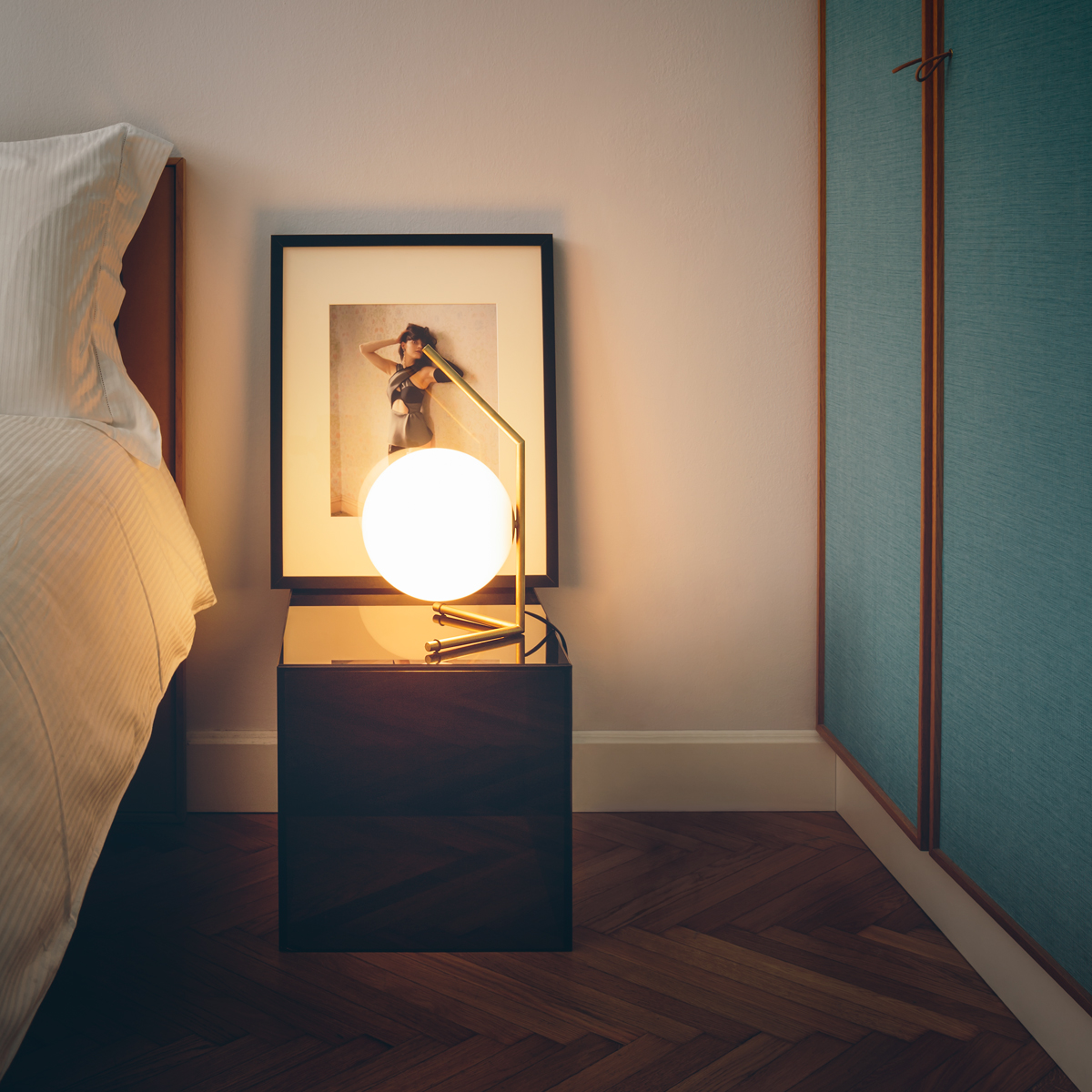 Ideal platziert auf Beistelltischen, Sideboards oder Nachtschränkchen, fügt sich die IC Lights T1 Low harmonisch in private Wohn- und Schlafzimmer ein. Auch in Lobbys und Hotels setzt sie stilvolle Akzente. Die Helligkeit lässt sich dank eines Dimmers in der Zuleitung stufenlos anpassen. Bitte achten Sie darauf, die Leuchte zu diesem Zweck mit dimmbaren LED-Leuchtmittel zu bestücken.