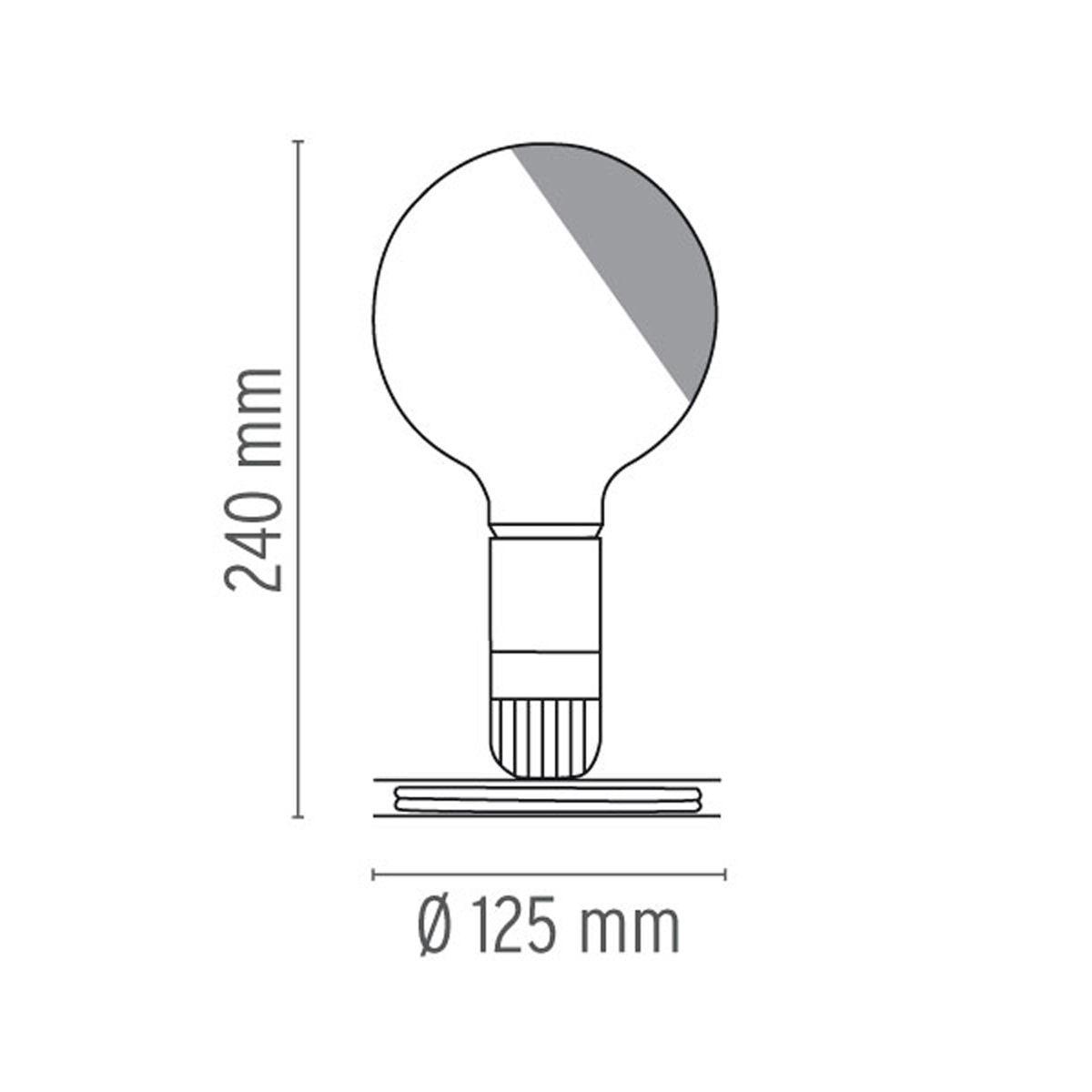 Im Lieferumfang inbegriffen ist ein energiesparendes LED-Leuchtmittel in Globeform, dessen transparente Oberfläche auf einer Seite sandstrahlmattiert ist. Auf diese Weise erzeugt die Flos Lampadina eine direkte und teils diffuse Lichtausstrahlung. Die Bedienung der Leuchte erfolgt über den an der Fassung befindlichen Kippschalter.