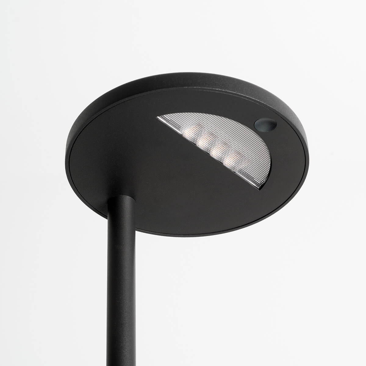 Im flachen Kopf verbirgt sich eine patentierte optische Linse, die einen asymmetrischen Lichtstrahl erzeugt. Dieser trifft genau dort auf, wo Licht gebraucht wird – flimmerfrei und blendfrei mit einem UGR-Wert unter 10. Dies wird den Anforderungen an professionelle Bildschirmarbeitsplätze mehr als gerecht. Die warmweiße Lichtfarbe von 2.700 K sorgt für eine angenehme Atmosphäre. Für professionelle Arbeitsumgebungen stehen auf Anfrage Versionen mit 3.000 oder 4.000 K zur Verfügung.