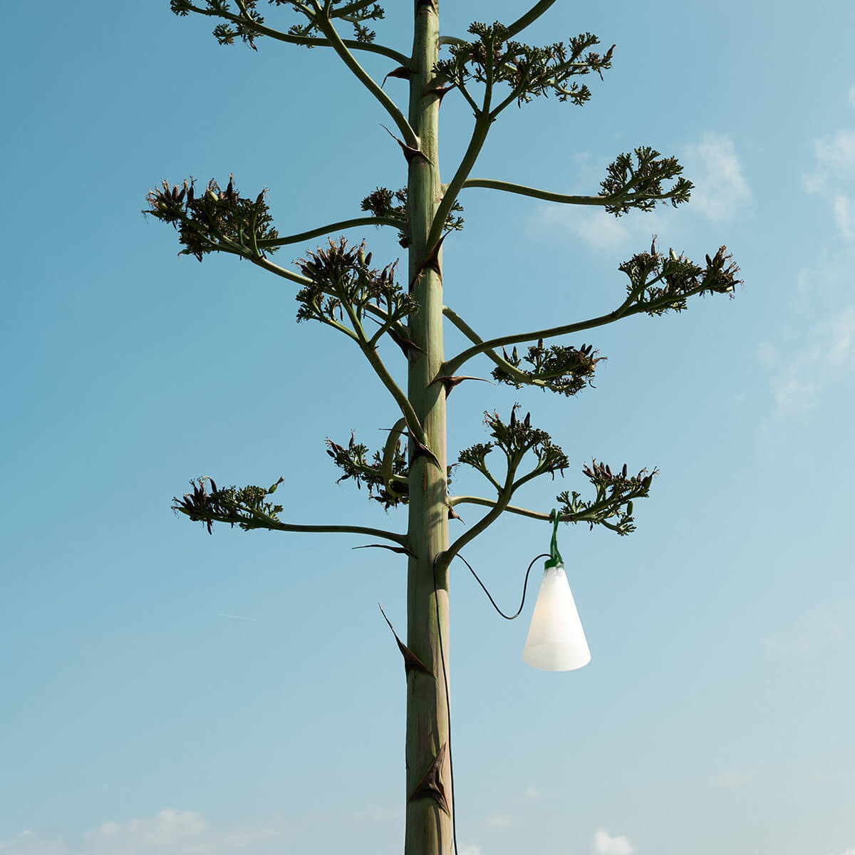 Bei der Fertigung der Mayday Outdoor folgt Flos bewusst den Prinzipien der Nachhaltigkeit. Der kegelförmige Lampenschirm besteht aus opalem Polypropylen, das aus Industrieabfällen gewonnen wird. Beim Zusammenbau der Leuchte wird auf Klebstoffverbindungen verzichtet, sodass sämtliche Teile nach dem Ableben auseinanderzubauen und korrekt recycelbar sind.