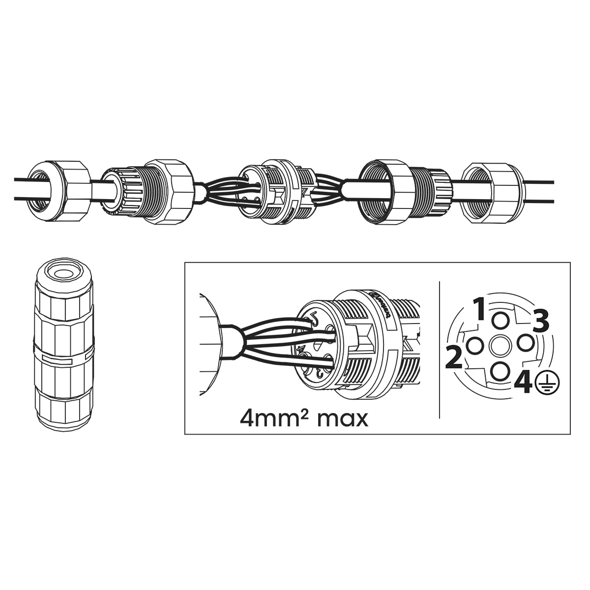 - Verbindungssystem, 2-Wege-H2O-Antikondensat, 4-polig, (Ø 5,5 ÷ 12 mm Kabel)