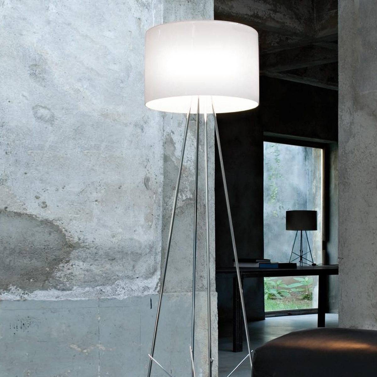 Die charakteristische Gestalt von Strommasten und Leuchttürmen diente dem Designer Rodolfo Dordoni als Vorbild für die Ray F2 Stehleuchte. Entstanden ist eine architektonisch anmutende Lichtquelle, deren aufstrebende und sich elegant verästelnde Struktur einen Innenraum geschmackvoll aufwertet. Hierbei steht der zylinderförmige Lampenschirm in einem reizvollen Kontrast zur Filigranität des aus gebürstetem und verchromtem Metall gefertigten Fußes.