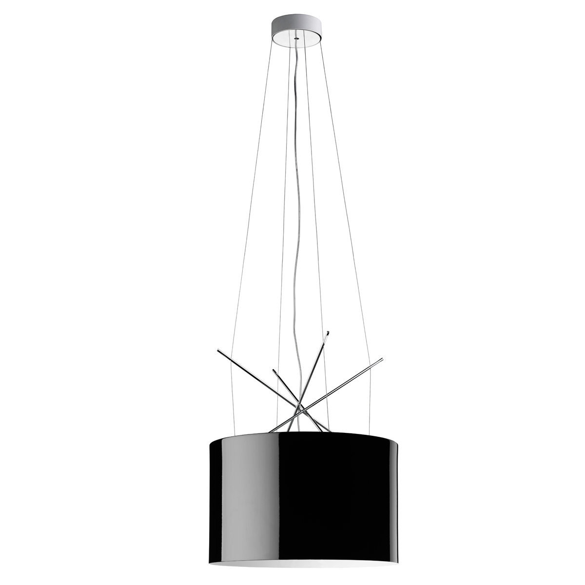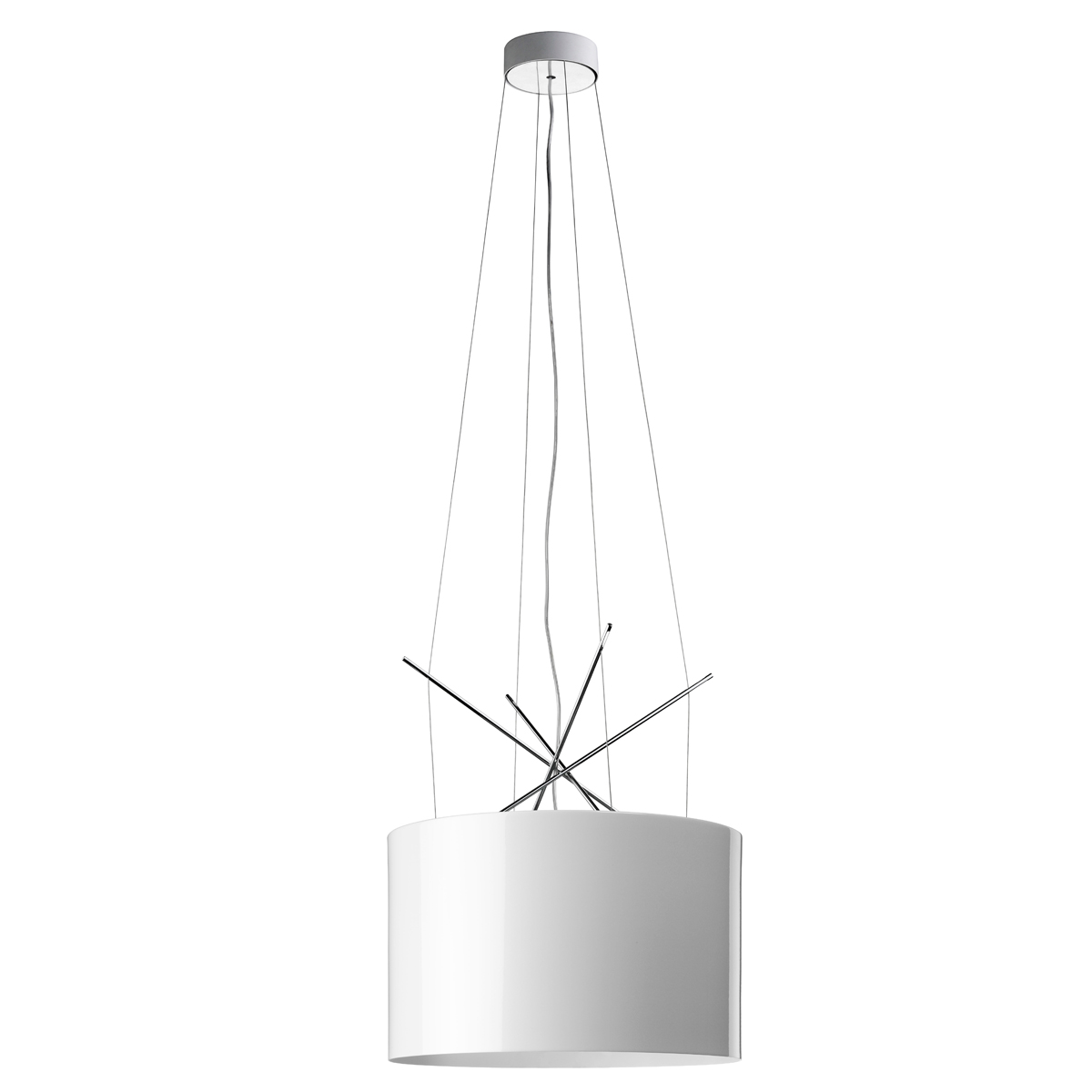 Das moderne Design der Ray S Pendelleuchte verdankt sich dem italienischen Designer Rodolfo Dordoni, der sich bei der Ideenfindung von den abstrakten Gebilden der Strommasten und Leuchttürme inspirieren ließ. Das Ergebnis ist eine dekorative Hängeleuchte, deren zylinderförmiger Schirm in einem reizvollen Kontrast zur Filigranität der ihn bekrönenden verchromten Stahlstruktur steht.