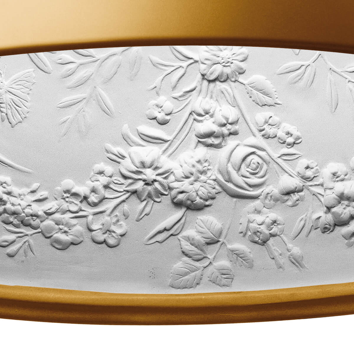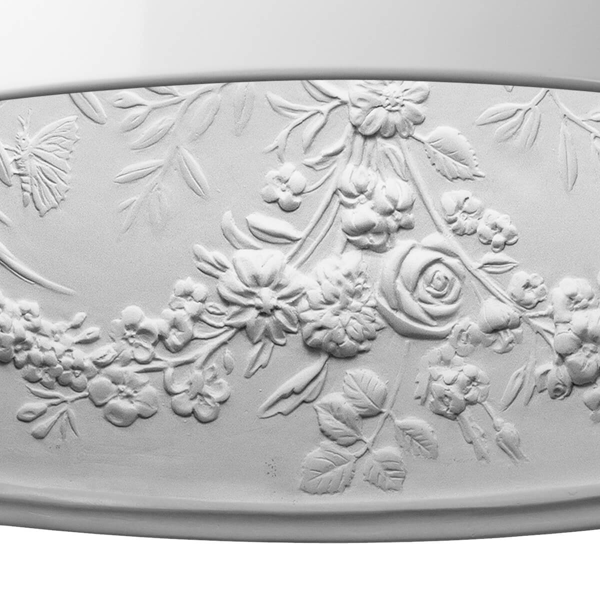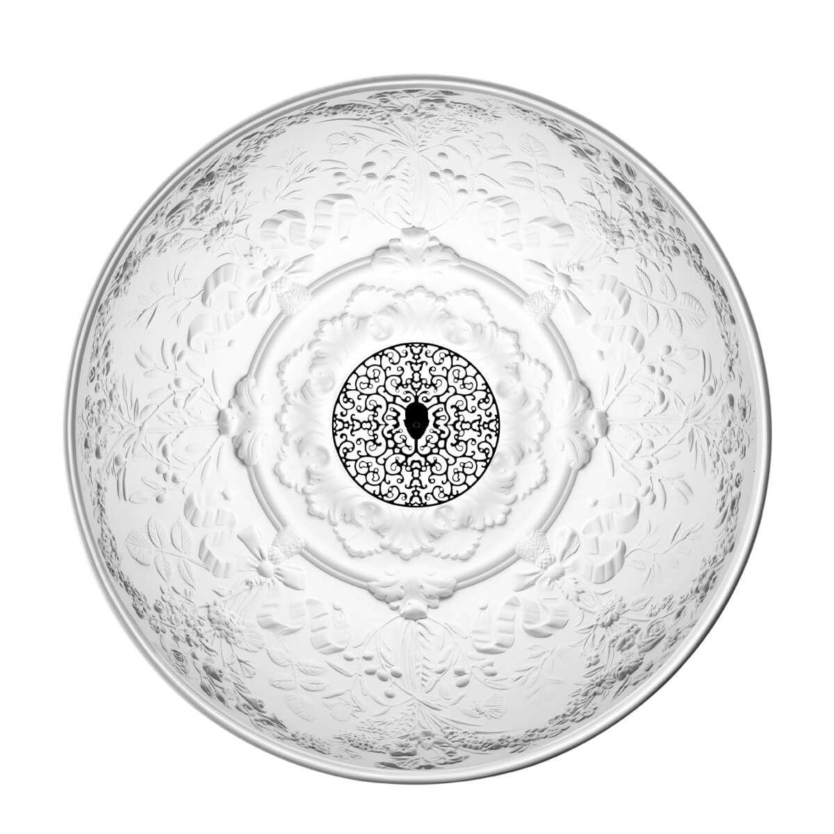 Kernpunkt des Designs ist die Kuppel aus mechanisch bearbeitetem Gipsguss, der an seiner Außenseite von einer farbig lackierten Aluminiumlegierung ummantelt ist. Die Innenseite ist weiß lackiert und von einer Formenwelt geprägt, die an die Ornamentik antiker Reliefs und die florale Lebendigkeit von Stuckrosetten im Jugendstil erinnert. Blumengirlanden, Schmetterlinge, Beeren und wehende Bänder verwandeln das Innere der Leuchte in einen "himmlischen Garten", der in einem hellen Licht erstrahlt.
