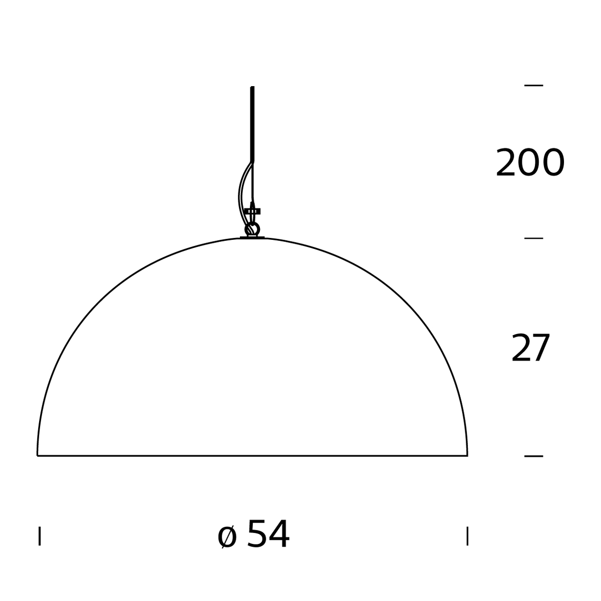 Gefertigt ist der halbkugelförmige Schirm der Cupola Media Sospensione aus Metall. Innen ist der Schirm weiß lackiert, um eine größtmögliche Reflektion zu gewährleisten. Die transparente Zuleitung unterstützt den diskreten Charakter der Fontana Arte Cupola Pendelleuchte.