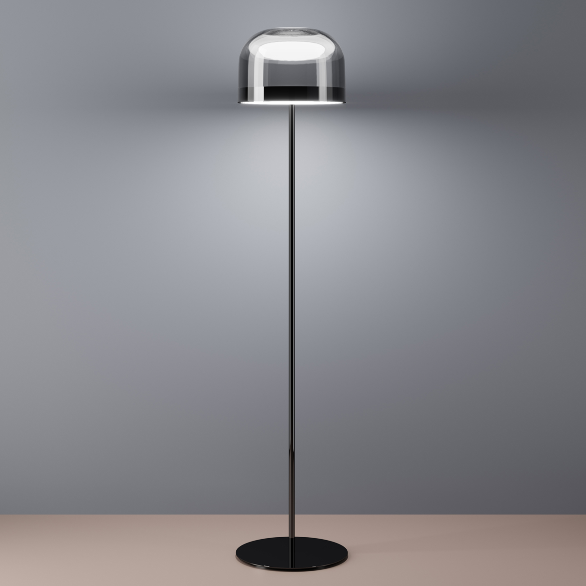 - Mit gerundetem, von innen her erleuchtetem Glasschirm in grauer oder taupefarbener Tönung