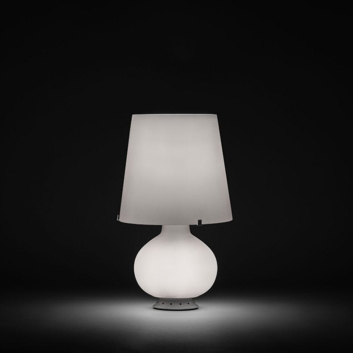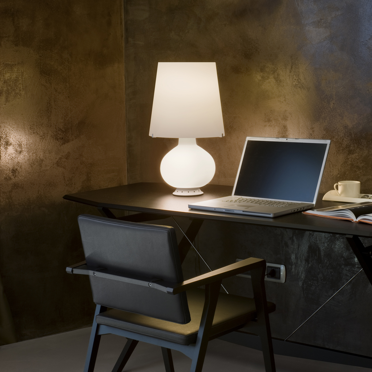- Elegante geformte Tischlampe aus mundgeblasenem, weißem Opalglas