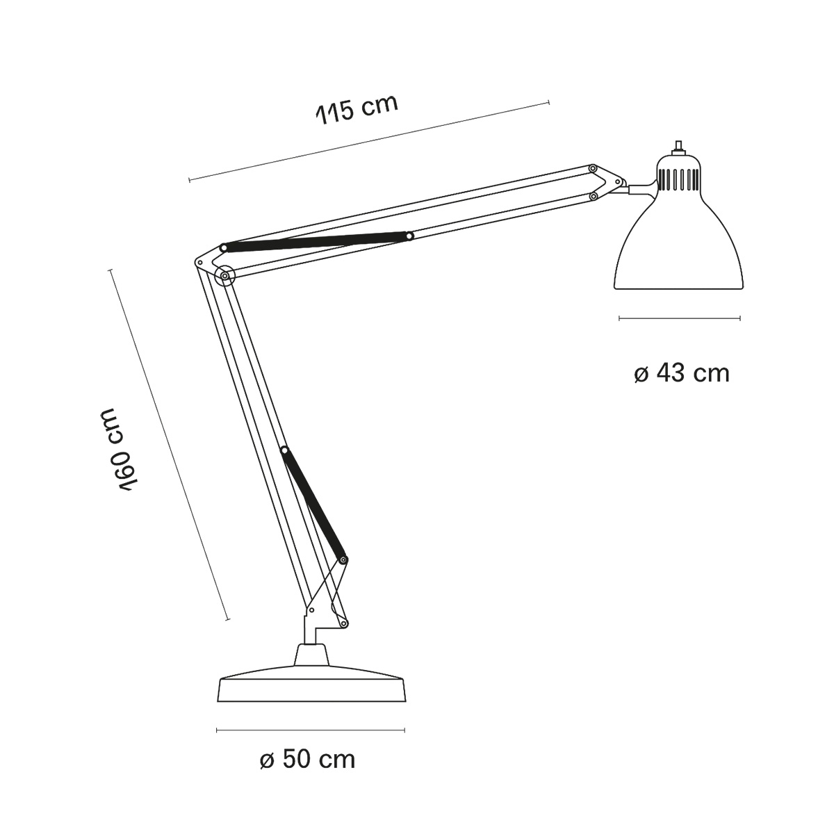| Diameter: | Base: 50 cm, shade: 43 cm |