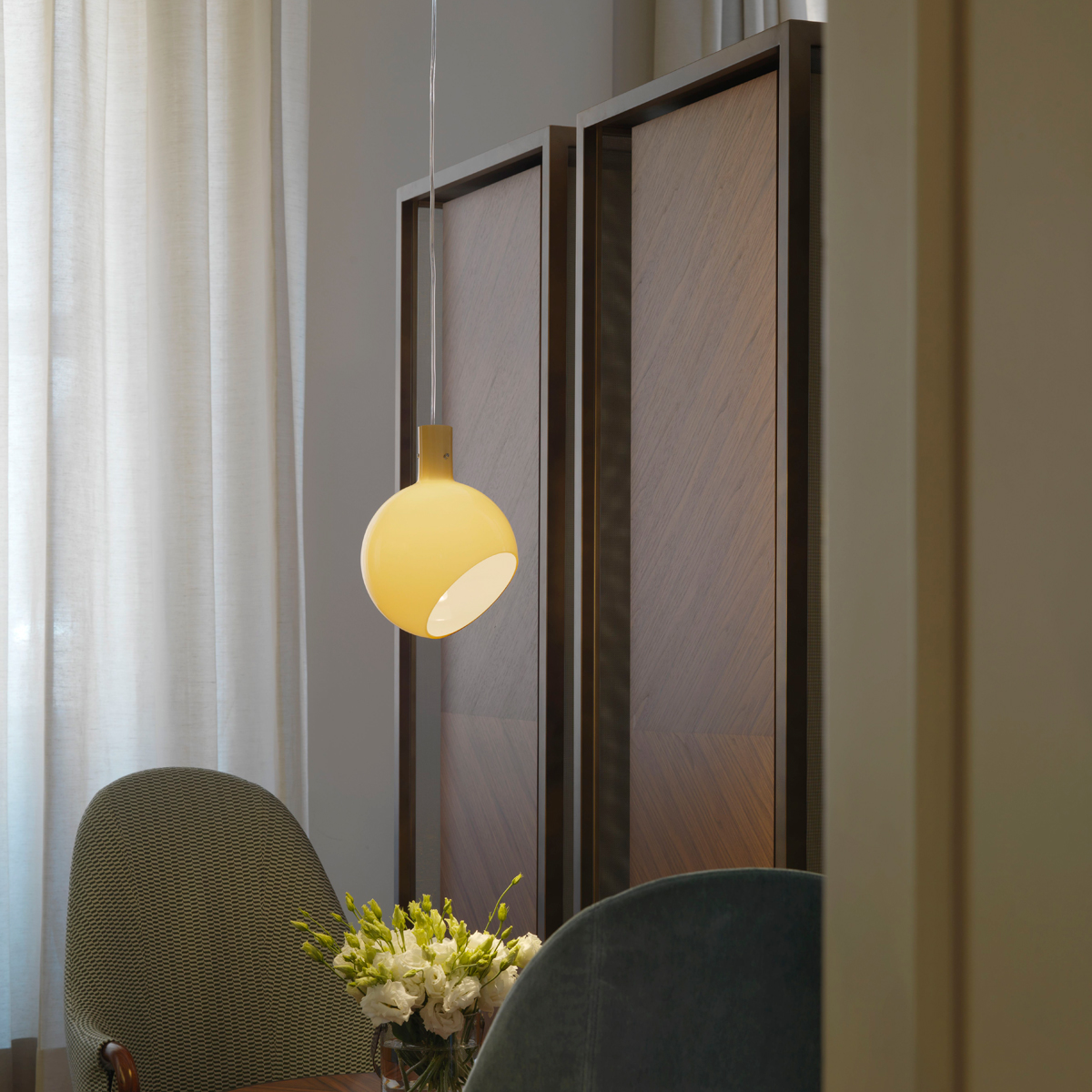 - Formschöne Pendelleuchte aus mundgeblasenem Opalglas