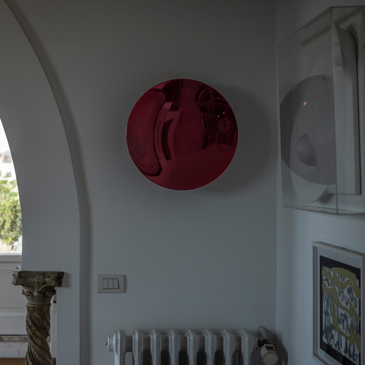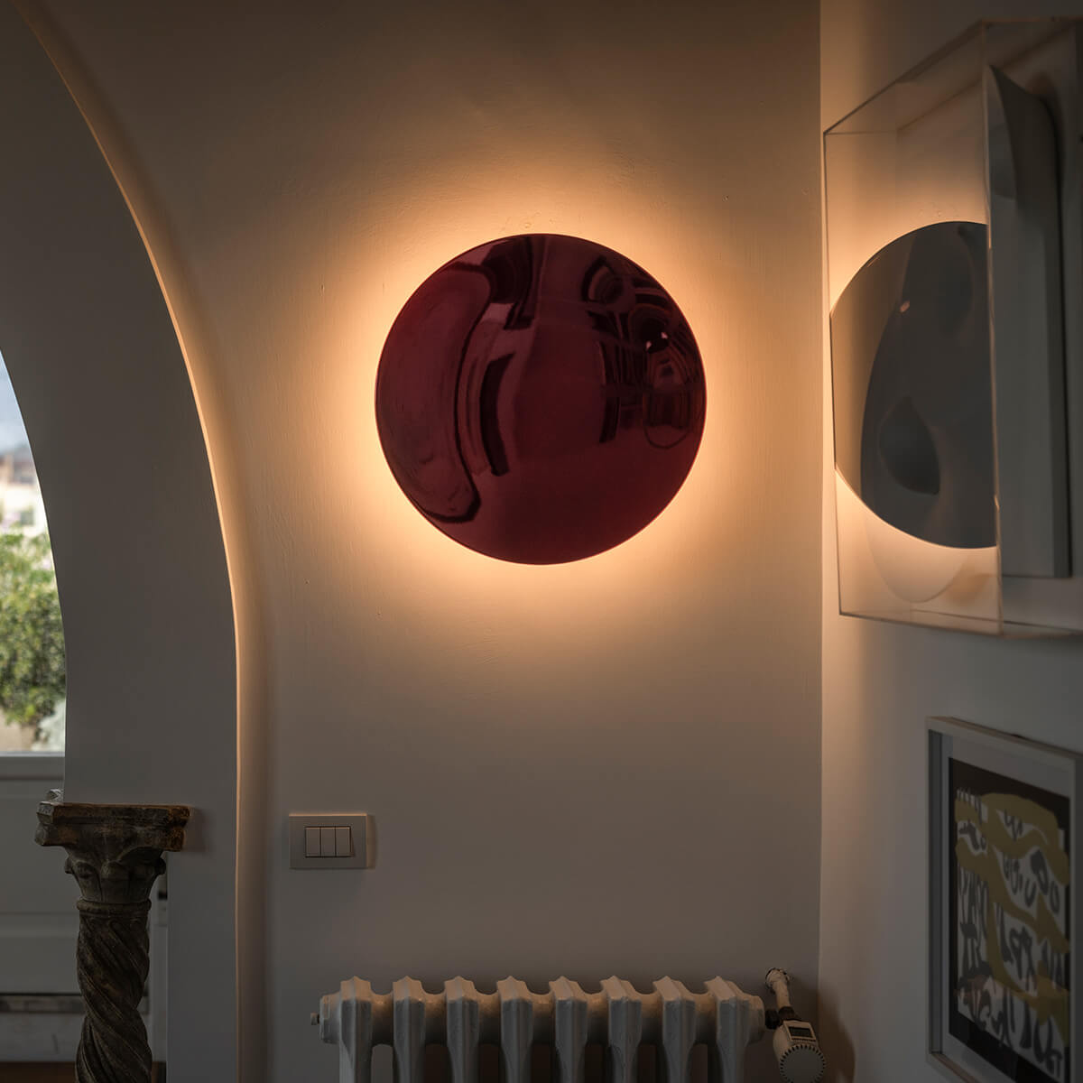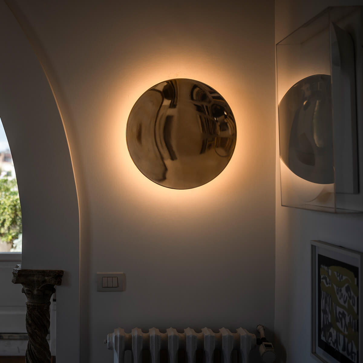 Die Anoor ist weit mehr als ein Lichtobjekt: Sie ist ein visuelles Erlebnis, das durch das Spiel von Licht, Form und Reflexion begeistert. Ein leicht konkaver, präzise gearbeiteter Aluminiumkörper in glänzender, gebürsteter Oberfläche – veredelt durch eine hochwertige Lackierung – erzeugt nicht nur faszinierende Tiefenwirkung, sondern reflektiert auch die Umgebung auf irisierende Weise. Dabei wirkt die Leuchte wie ein leuchtender Planet an der Wand oder Decke – skulptural, edel und mystisch zugleich.