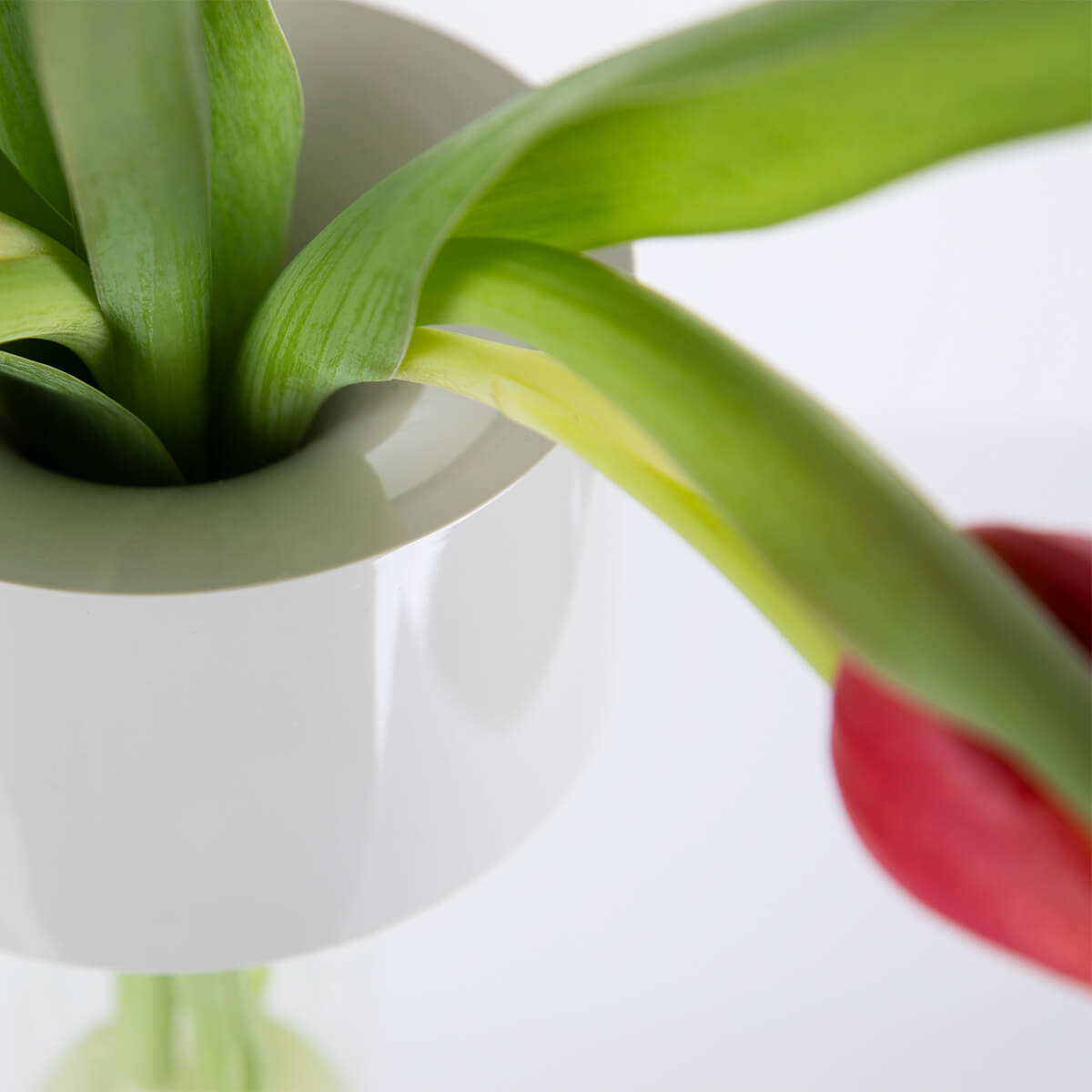 Die Fleur Akkulampe, eine Kreation des italienischen Designers Rodolfo Dordoni, ist ein Meisterwerk an Vielseitigkeit und Eleganz. Die wiederaufladbare Tischleuchte verbindet die Feinheit modernen Designs mit der Funktionalität kabelloser Beleuchtung – und ist noch viel mehr. Denn der nach oben hin offene Glasfuß kann mit Wasser gefüllt und als Vase für eine oder mehrere Blumen genutzt werden. Diese ruhen sanft auf dem farbig lackierten, leuchtenden Lampenkörper, der eine kraftvolle Präsenz ausstrahlt.