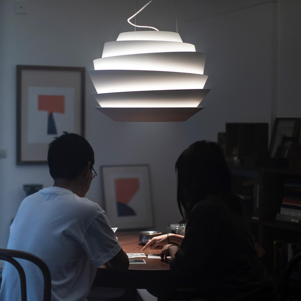 - Moderne Pendelleuchte aus weißem Kunststoff