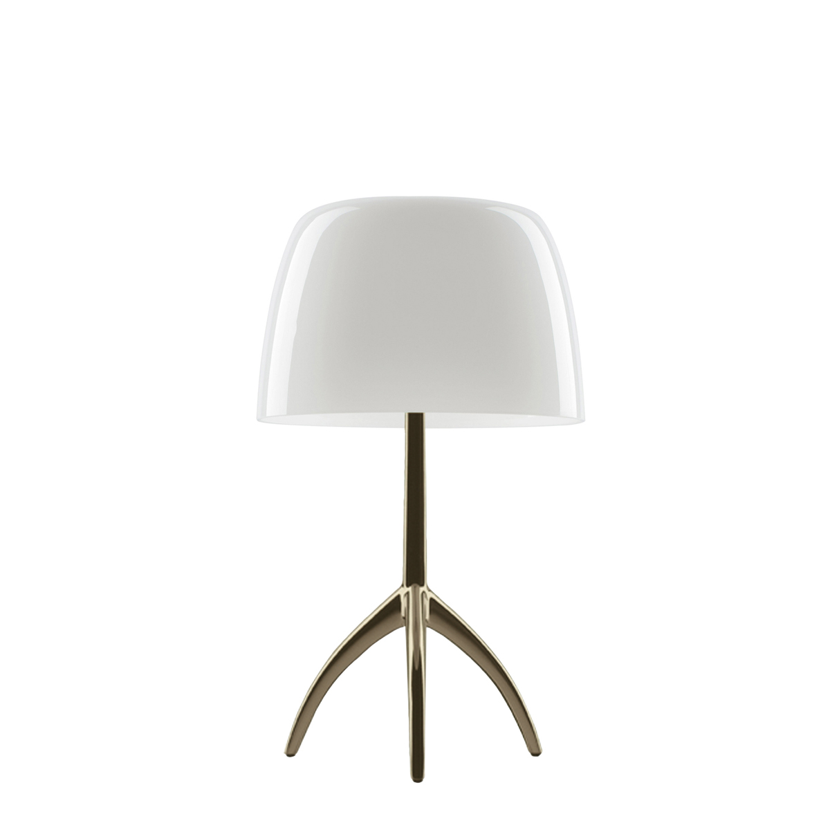 Foscarini Lumiere Piccola Tavolo, mit Dimmer, Aluminium / warmweiß (eingeschaltet)