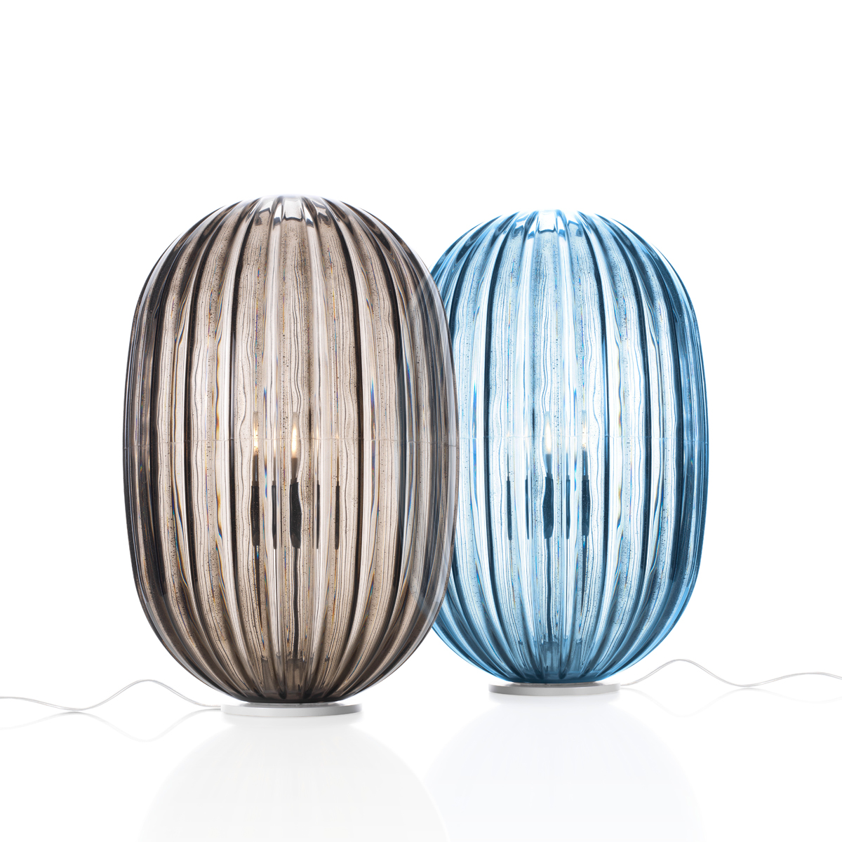 Die beiden Farben, in denen die Foscarini Plass Media Tavolo zu erwerben ist – modernes Grau und sanftes Hellblau –, unterstreichen das zeitgenössische Design des Produkts und machen die Tischlampe zu einer wahren Lichtskulptur.