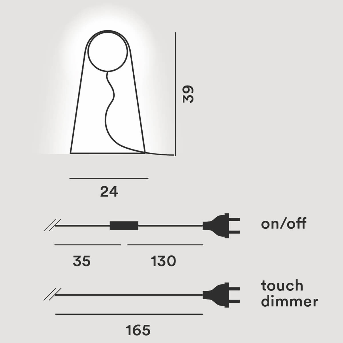 - Erhältlich mit Schalter oder integriertem Touchdimmer