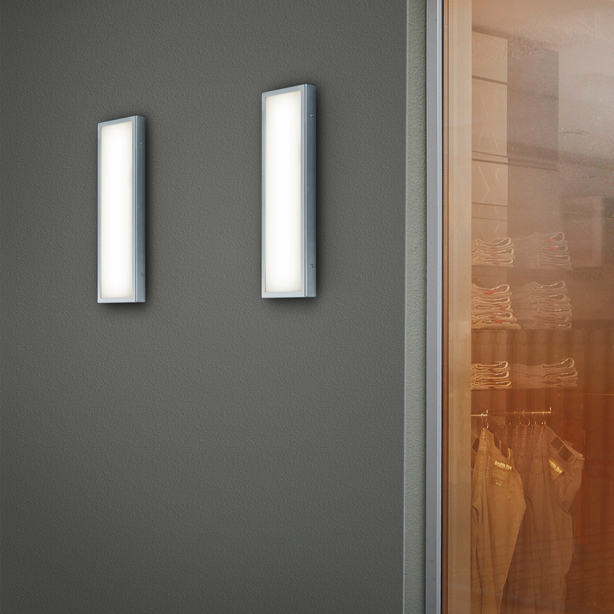 - Linienbetonte Wandleuchte mit Edelstahlgehäuse