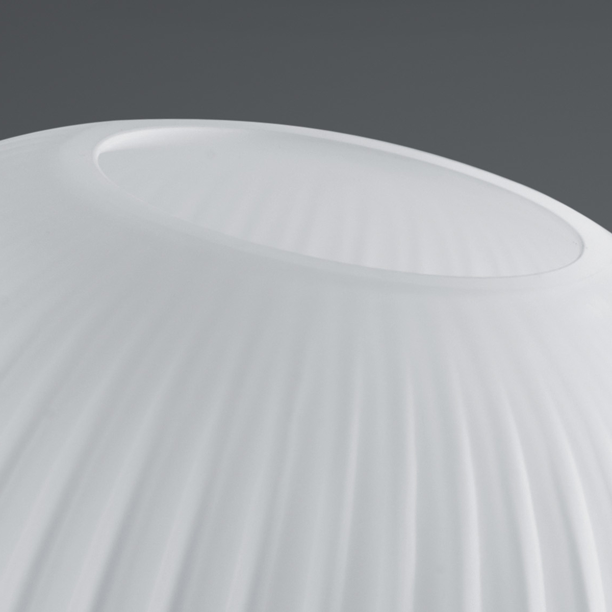 - Mit dekorativ geriffeltem Lampenschirm aus weißem Glas