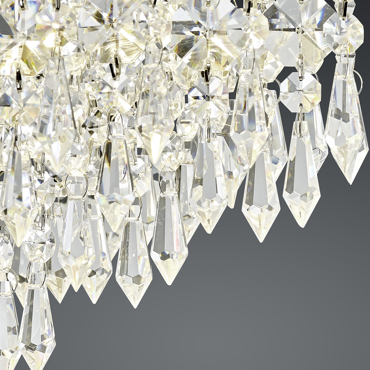 Die glanzvolle Palace LED Deckenleuchte kombiniert ein edles Design mit modernster Lichttechnologie. Die LED-Leuchte wird über die mitgelieferte B-Link Fernbedienung gedimmt, die mit bis zu neun weiteren Empfängern verbunden werden kann. Die Fernbedienung können Sie frei bedienen oder auch an einer Wand oder auf dem Mobiliar befestigen. Für effektvolle Lichtreflexe und eine luxuriös anmutende Ästhetik sorgt der kristallähnliche Behang der Deckenleuchte. Bitte beachten Sie, dass das Produkt nicht mit einem Wanddimmer kombiniert werden darf.