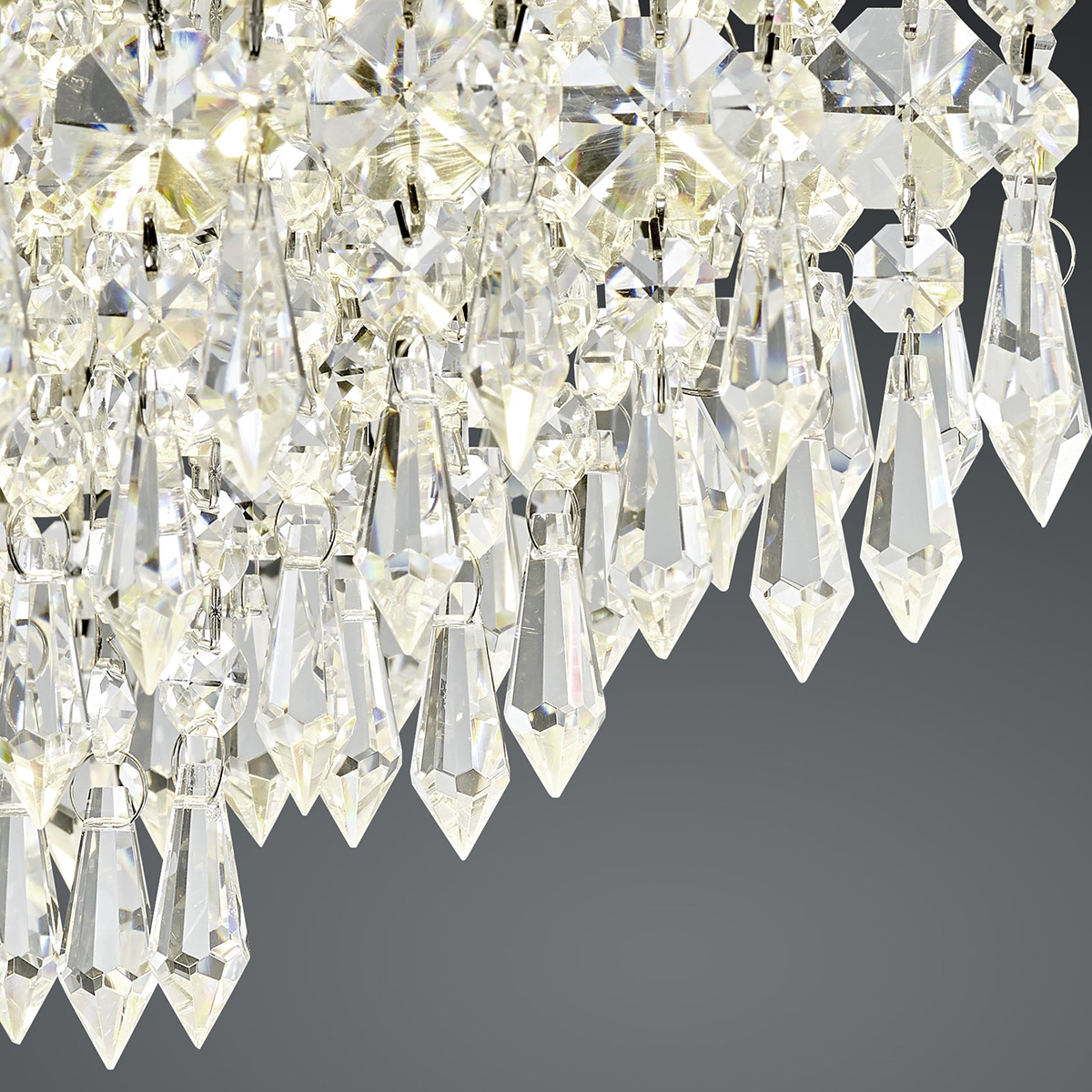 Verleihen Sie Ihrem Zuhause eine Prise Glamour! Die Palace LED Deckenleuchte setzt Ihren Wohnbereich perfekt in Szene. Der extravagante Glasbehang erinnert an opulente Lüster und schafft glanzvolle Lichtreflexe, die alle Blicke auf sich ziehen. Hinter dem klassisch anmutenden Design verbirgt sich neueste Lichttechnik: Stufenlos gedimmt wird die Leuchte via mitgelieferter B-Link Fernbedienung, die mit bis zu neun weiteren Empfängern verbunden werden kann. Die Fernbedienung können Sie frei bedienen oder auch an einer Wand oder auf dem Mobiliar befestigen. Bitte beachten Sie, dass die Deckenlampe nicht mit einem Wanddimmer kombiniert werden darf.