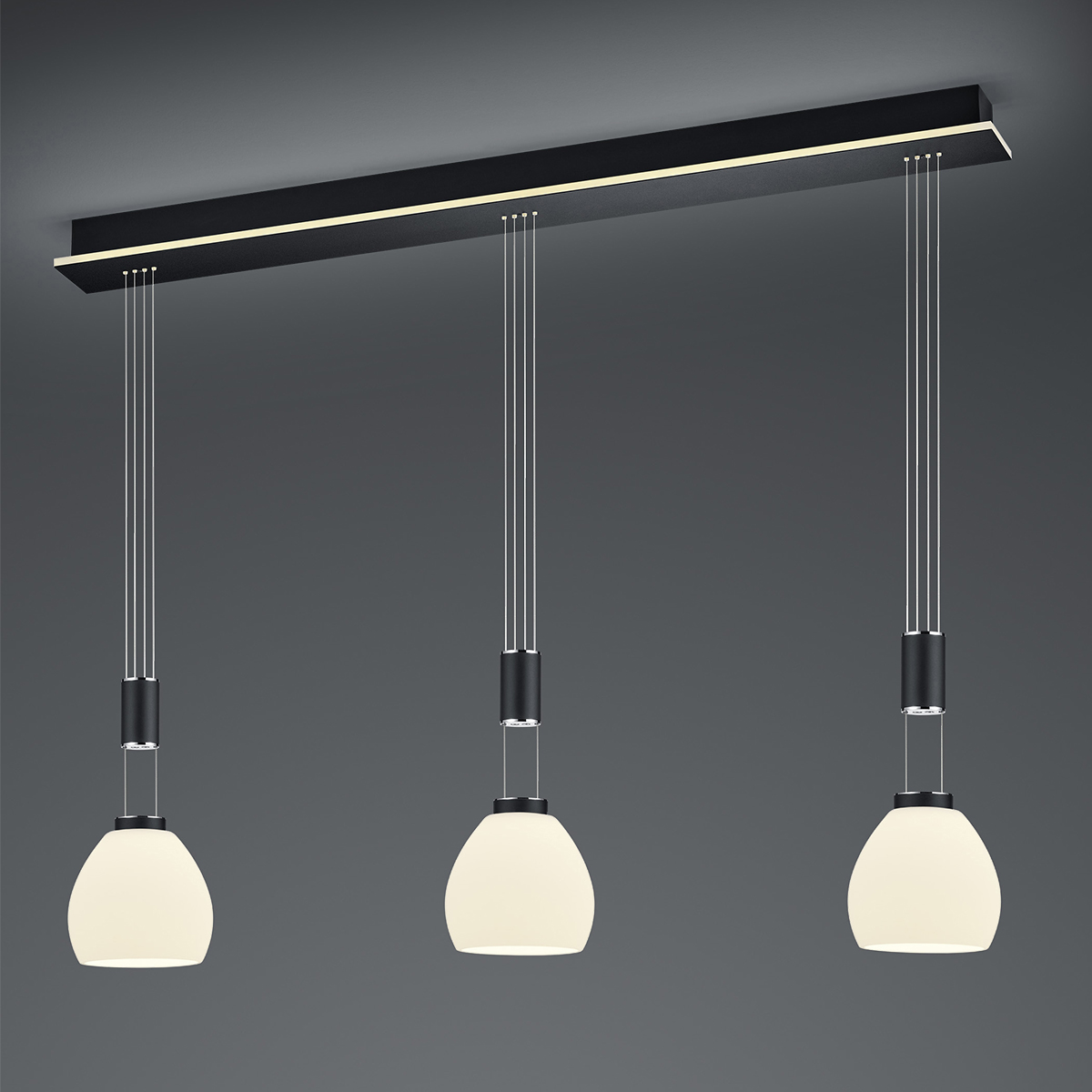Einfach, intuitiv und bequem aus der Ferne: Die dreiflammige Sam LED Pendelleuchte wird über die innovative B-Link Funkfernbedienung geschaltet und gedimmt. Diese ist im Lieferumfang inbegriffen und kann entweder an der Wand befestigt oder als mobiles Bedienelement auf dem Mobiliar platziert werden. Die B-Link Fernbedienung kann mit bis zu neun weiteren Empfängern verbunden werden.