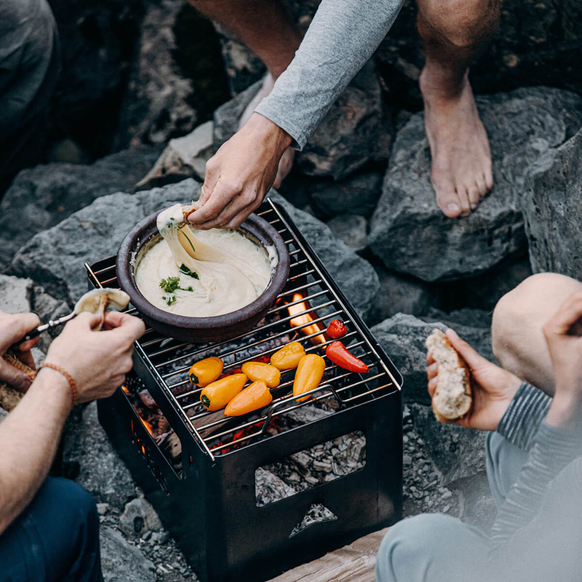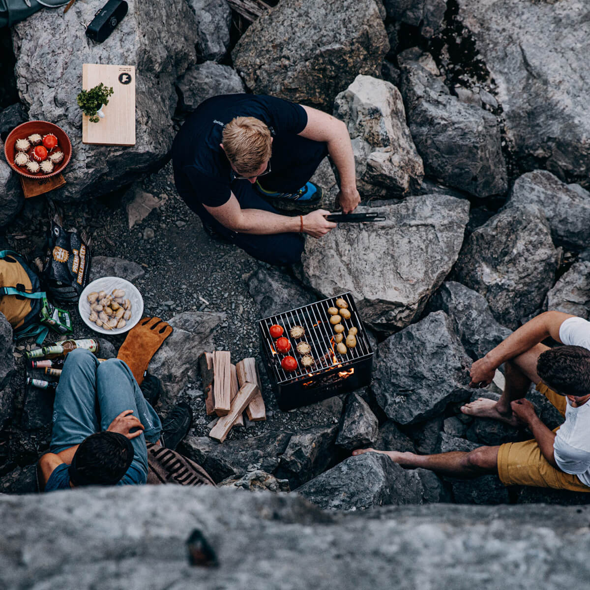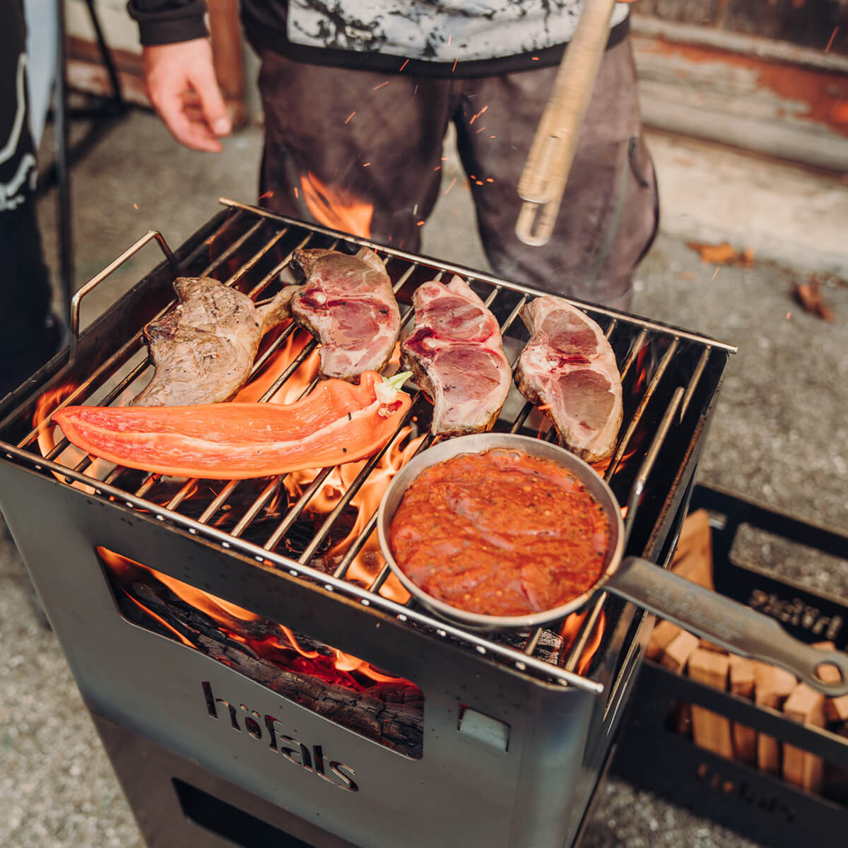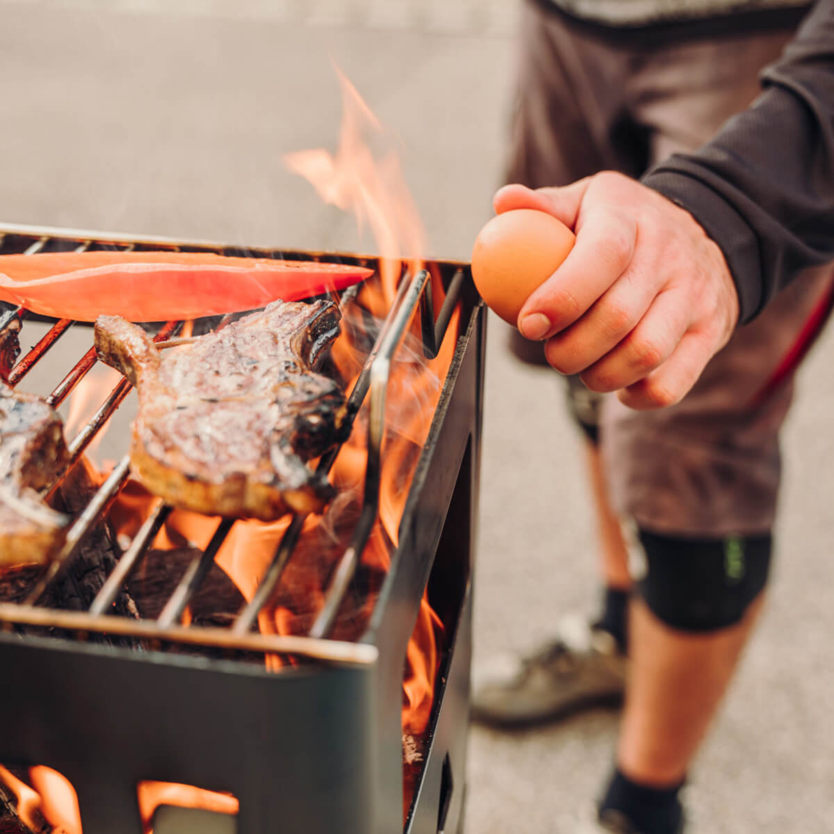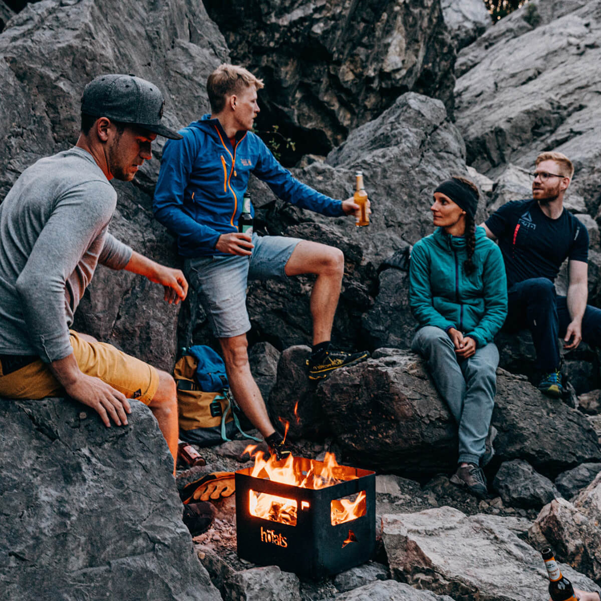 Die Beer Box ist ein echtes Multitalent. Feuerholz einlegen, anzünden – und schon hat man eine offene Feuerstelle. Das Kartoninnenleben kann im Notfall als Anzündhilfe genutzt werden. Und dank optionalem Zubehör wie Grillrost und Holzbrett lässt sich die Kiste im Handumdrehen in einen Grill, Hocker oder Beistelltisch verwandeln.