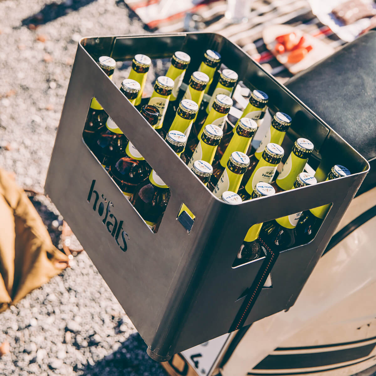 Doch damit noch nicht genug. Die höfats Beer Box ist stapelbar und lässt sich somit problemlos erhöhen. Einen einfachen Transport versprechen die großen Tragegriffe. Und dass die Box nicht nur zur Mitnahme von Getränkeflaschen, sondern auch zum Verstauen von Grillzeug etc. genutzt werden kann, erklärt sich fast schon von selbst. Ein weiteres praktisches Gimmick: der integrierte Kronkorkenöffner!