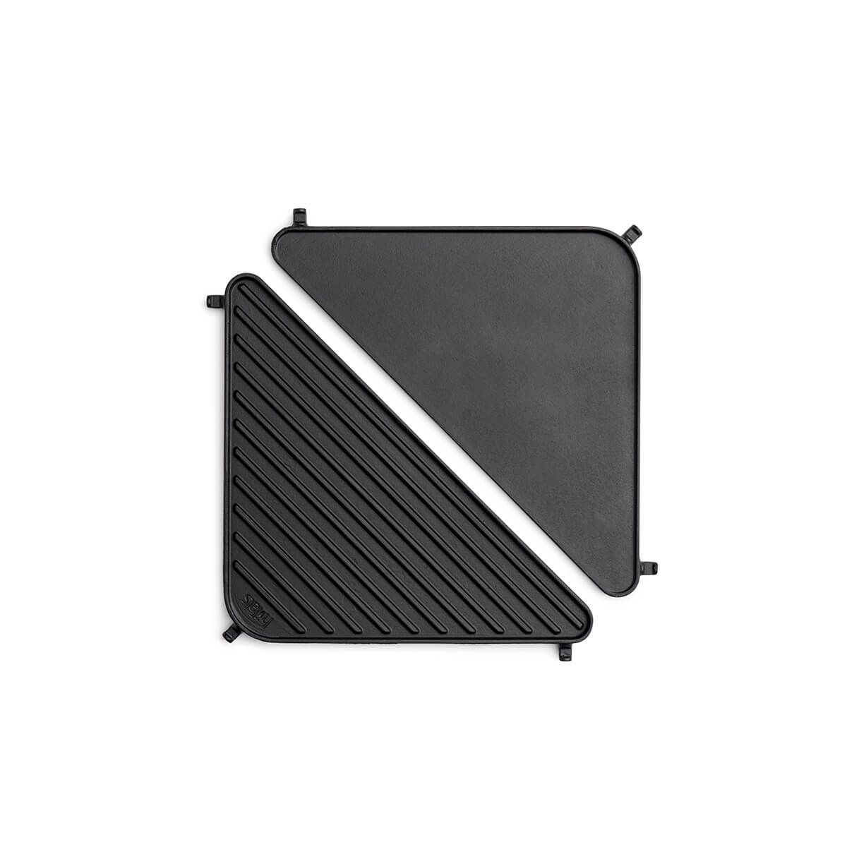Mit der massiven Gusseisenplatte lässt sich der höfats Cube Feuerkorb im Handumdrehen in einen Plancha Grill verwandeln. Die Platte ist dabei im Raster der Ausbrüche des Cube auf vier Stufen höhen- und somit hitzeregulierbar. Ideal für die Zubereitung von Gambas, Krabben, kleinen Tintenfischen, Zucchinischeiben oder Gemüseallerlei!