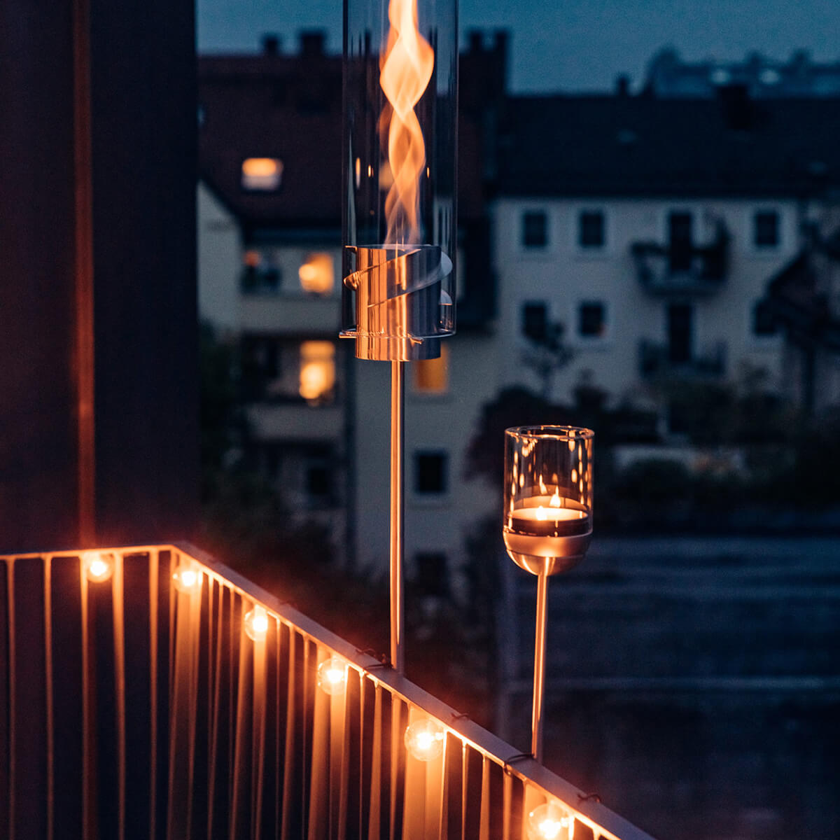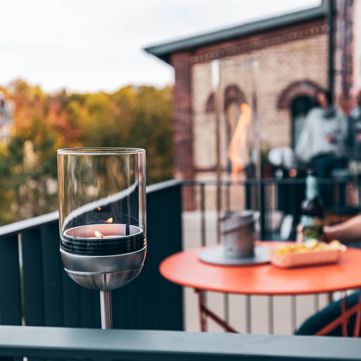 Das Windlicht selbst wird einfach auf die Schale gesetzt. Auch in dieser Position kann die Kerze umgedreht werden, um sie zum Erlöschen zu bringen und vor Witterung zu schützen. Das höfats Gravity Candle Windlicht können Sie ebenso wie den passenden Fuß als Zubehör in unserem Shop erwerben.