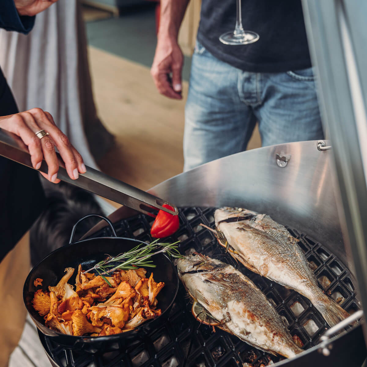 - Perfekt, um Steaks oder auch kleineres Grillgut wie Garnelen zu fassen