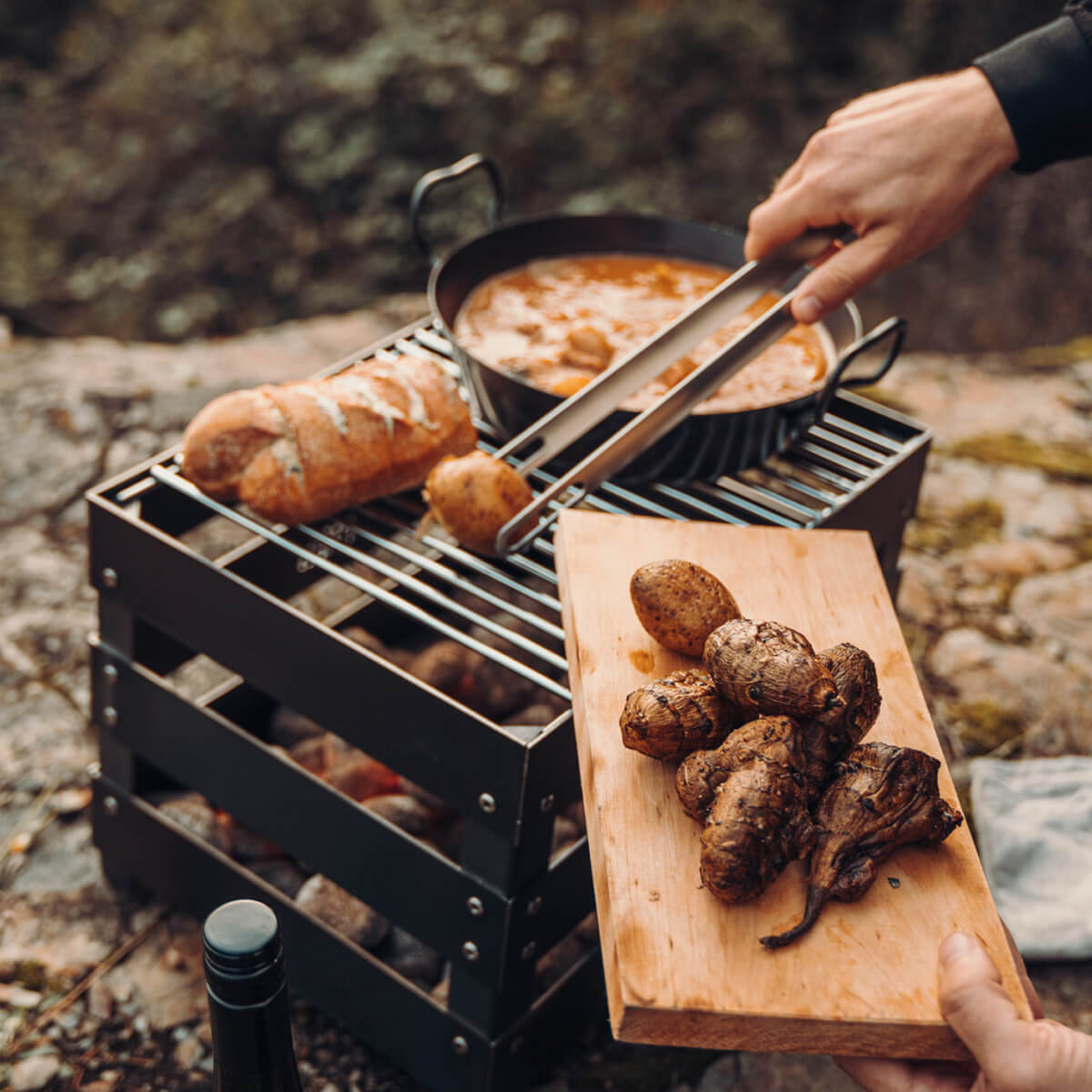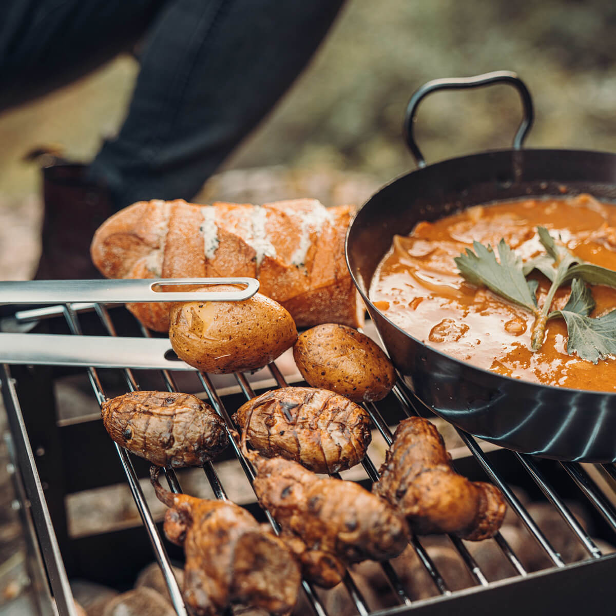- Kann auch dazu genutzt werden, den Rost über die Glut zu legen oder herauszuheben