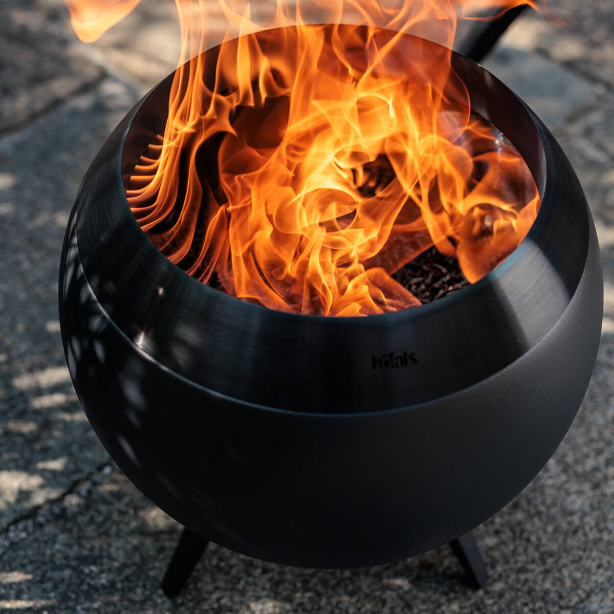 Vor allem die Befeuerung mit Holzpellets bietet ein komfortables Feuererlebnis von bis zu zwei Stunden (bei der Verwendung von ca. 10 bis 12 kg Pellets) – ohne Nachlegen und lästige Rauchentwicklung. So können Sie auch in dicht besiedelten Gebieten ungestört die Wärme und Magie des Feuers genießen. Übrigens: Mit dem höfats Bioethanol Gel-Brennstoff lassen sich die Pellets mühelos anzünden. Und falls Sie am Feuer Hunger verspüren: Zusammen mit der Moon Plancha können Sie die Feuerschale auch als vielseitigen Plancha-Grill nutzen.