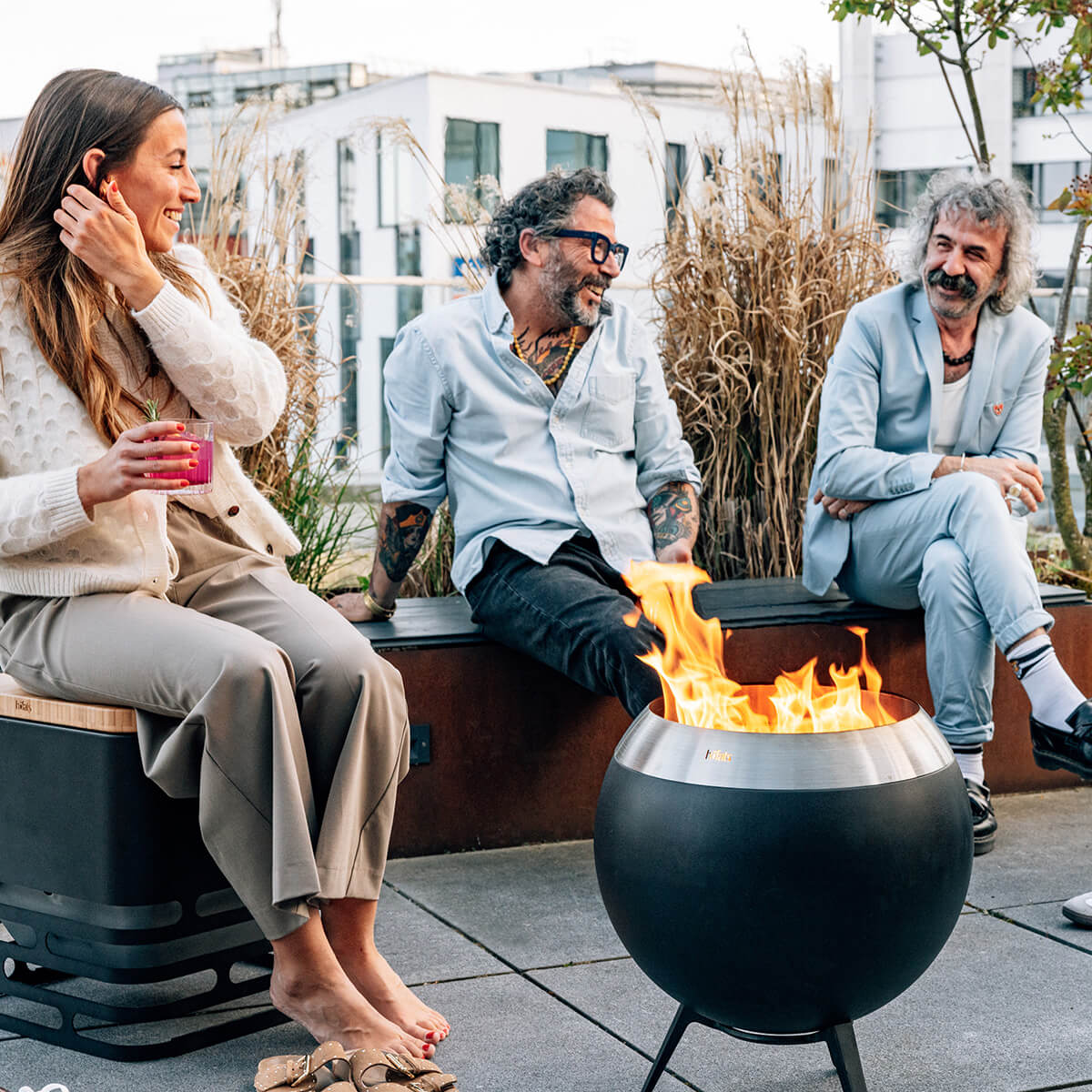 Die Moon 45 von höfats ist die perfekte Symbiose aus hochwertigem Design, Innovation und Funktionalität. Mit ihrem kugelförmigen Look scheint sie förmlich über dem Boden zu schweben und verwandelt jede Outdoor-Umgebung in einen magischen Ort der Entspannung. Dank ihrer raffinierten Technik setzt die Feuerstelle neue Maßstäbe in Sachen Feuerkultur und schafft eine unvergleichliche Atmosphäre – egal, ob im Garten, auf der Terrasse oder bei städtischen Outdoor-Events.
