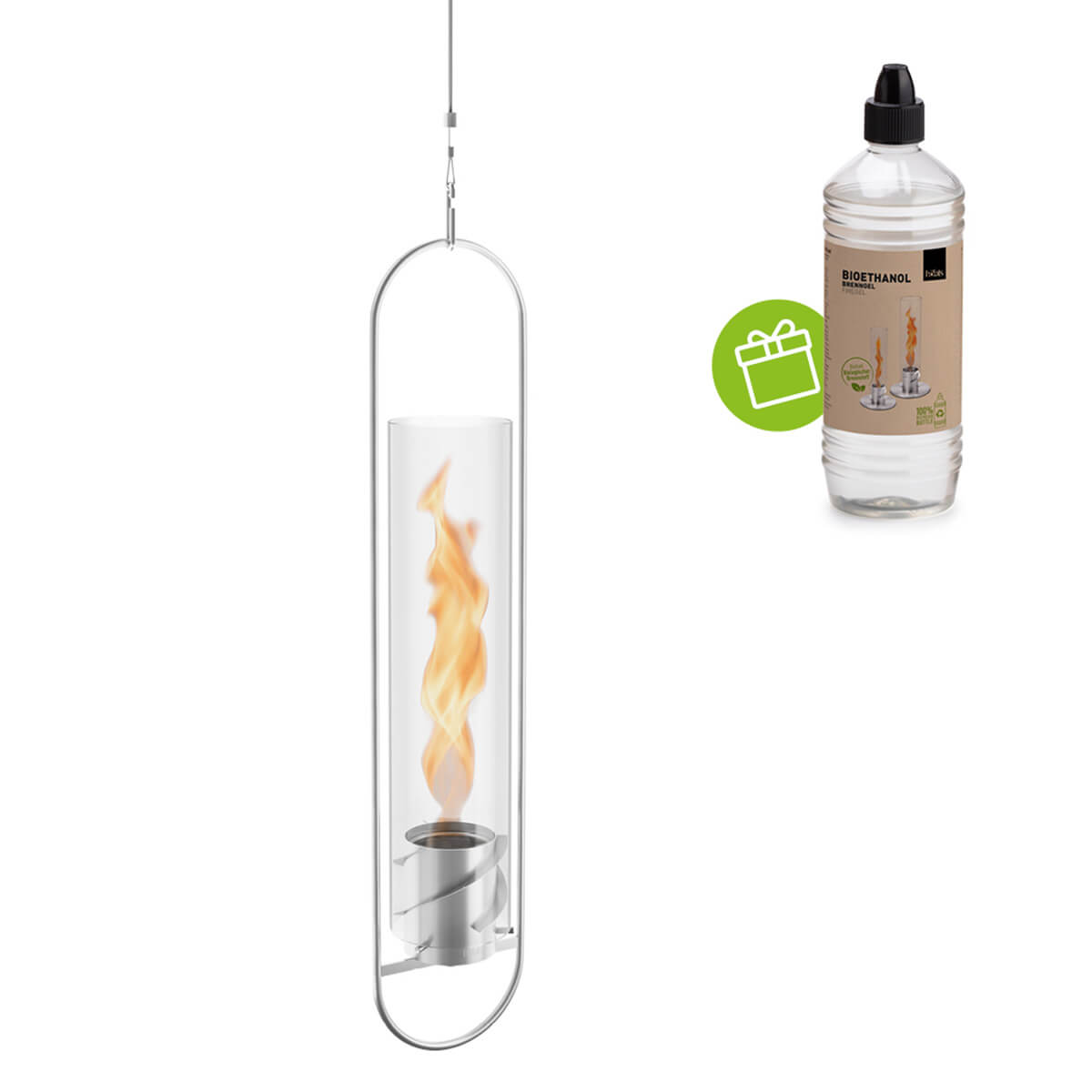 Es ist Zeit, abzuheben! Dank Edelstahlhänger und filigraner Seilabhängung lässt sich das preisgekrönte höfats Spin 120 Tischfeuer nun auch als spektakuläre Hängefackel nutzen. Das robuste Edelstahlseil ist höhenverstellbar und kann einfach an einem Haken etc. befestigt werden. Auf Terrasse, Balkon oder drinnen im Wohnzimmer avanciert das Spin 120 Hängefeuer zu einem besonderen Blickfang mit erstklassikem Lagerfeuer-Feeling.