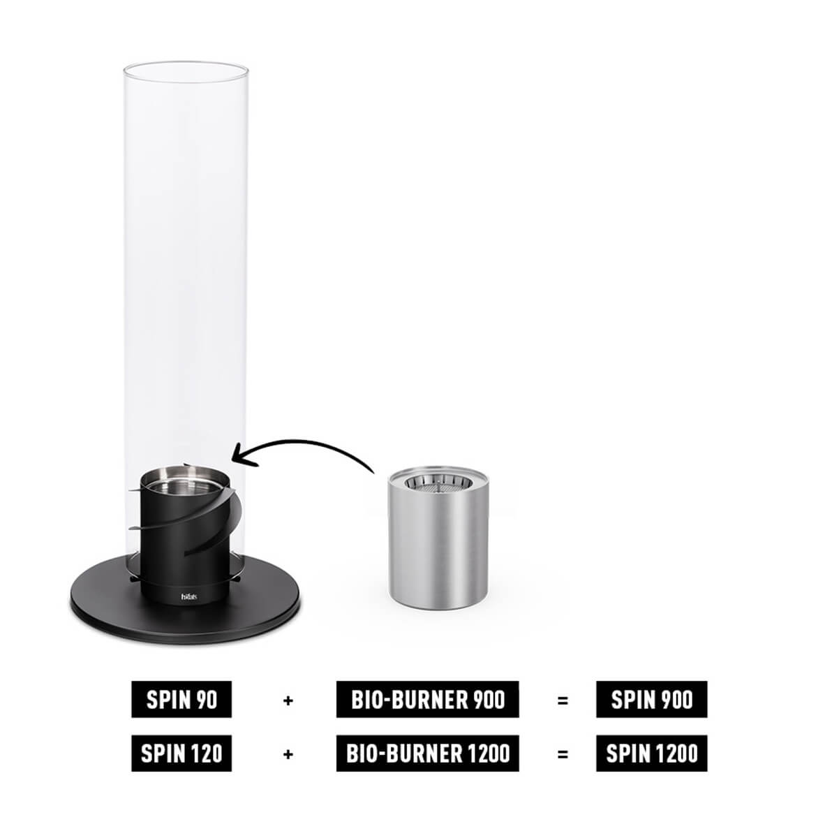 Der Spin 900 Bio-Burner revolutioniert das Erlebnis des Spin-typischen Flammenspiels. Der technologisch fortschrittliche Brenner ist mit den Modellen Spin 90 und Spin 900 kompatibel und setzt neue Maßstäbe in Sachen Funktionalität, Sicherheit und Brenndauer. Durch seine innovative Brennertechnologie erzeugt er eine markante Flamme, die sogar bei Tageslicht sichtbar ist. Besonders praktisch: Mithilfe des Bio-Burners lassen sich bestehende Spin 90 Tischfeuer zu Spin 900 Modellen upgraden. Tauschen Sie hierzu einfach den Brenngelbehälter der Spin 90 durch den Bio-Burner aus.