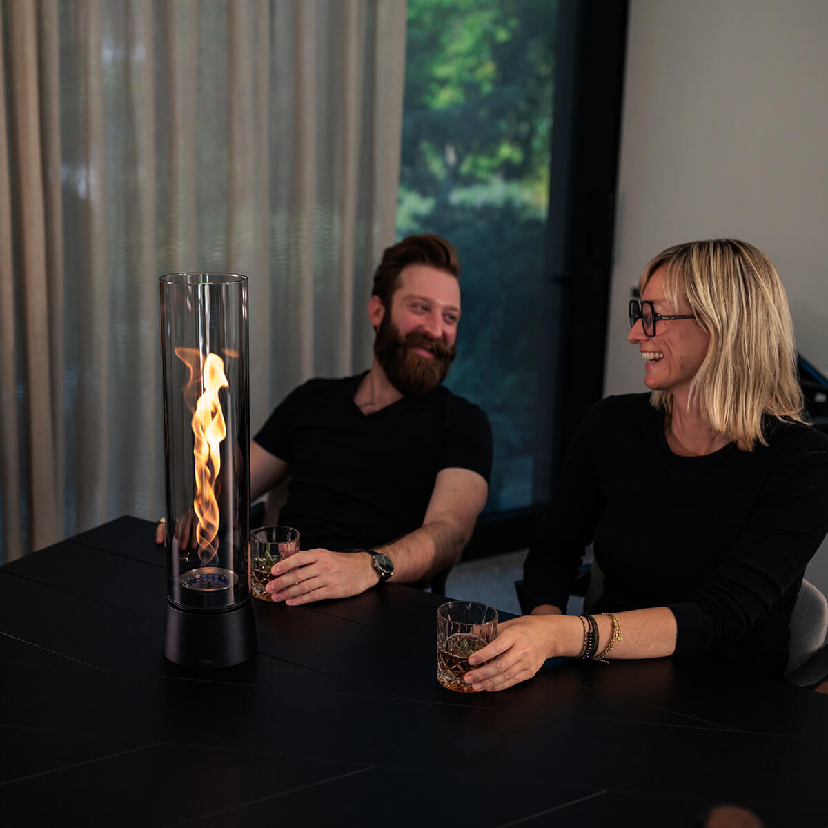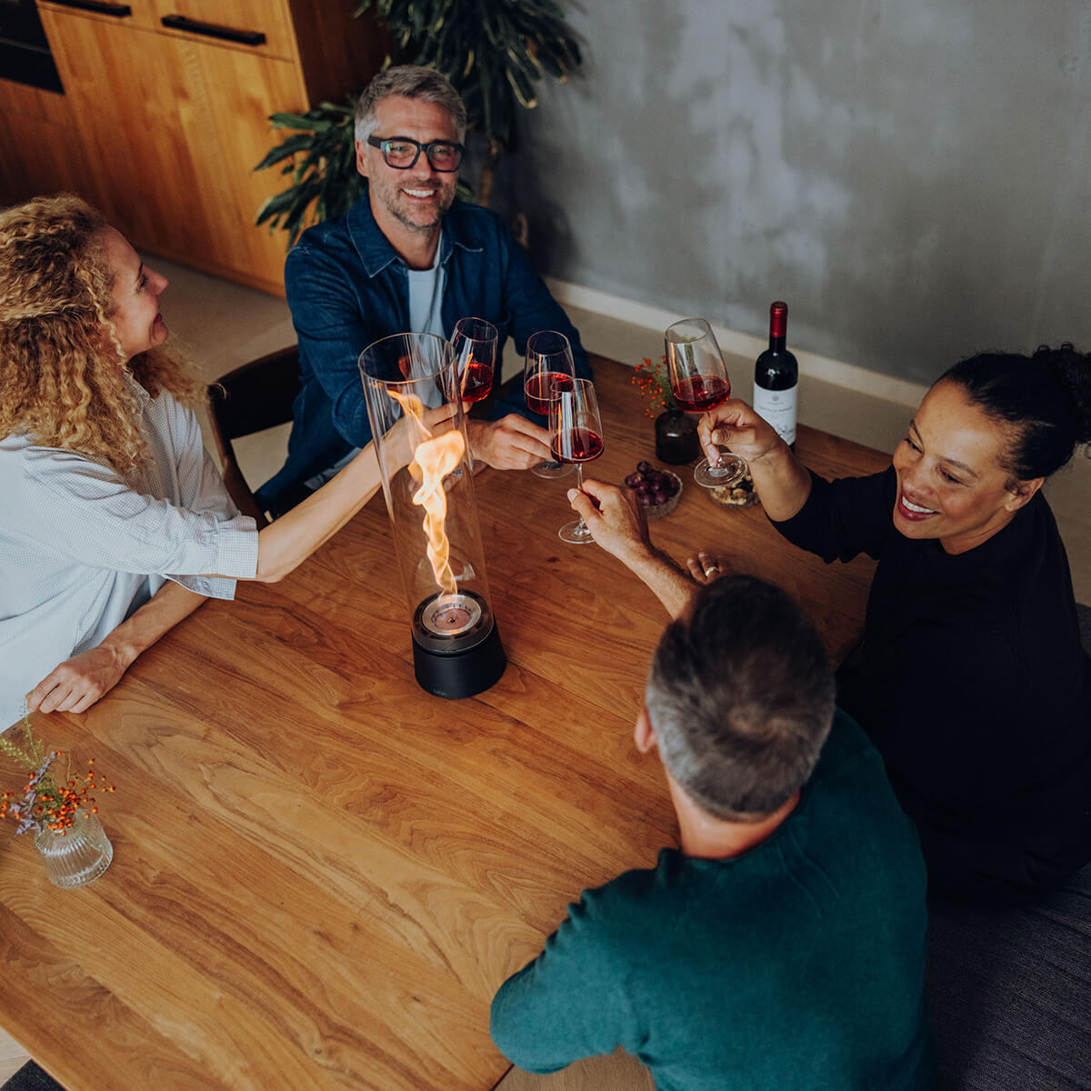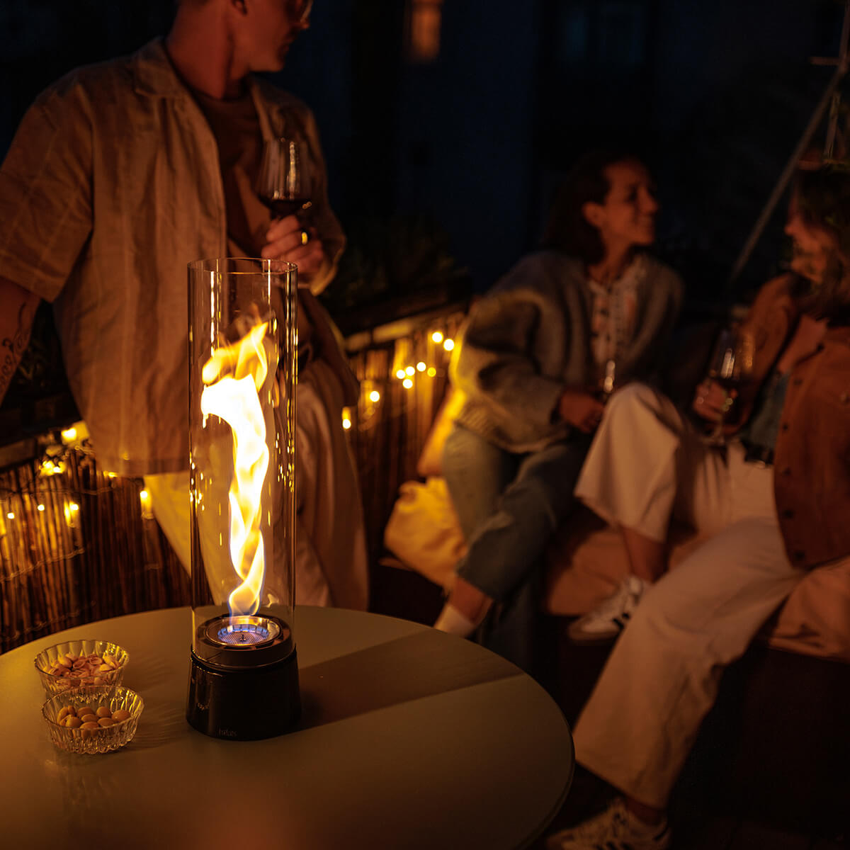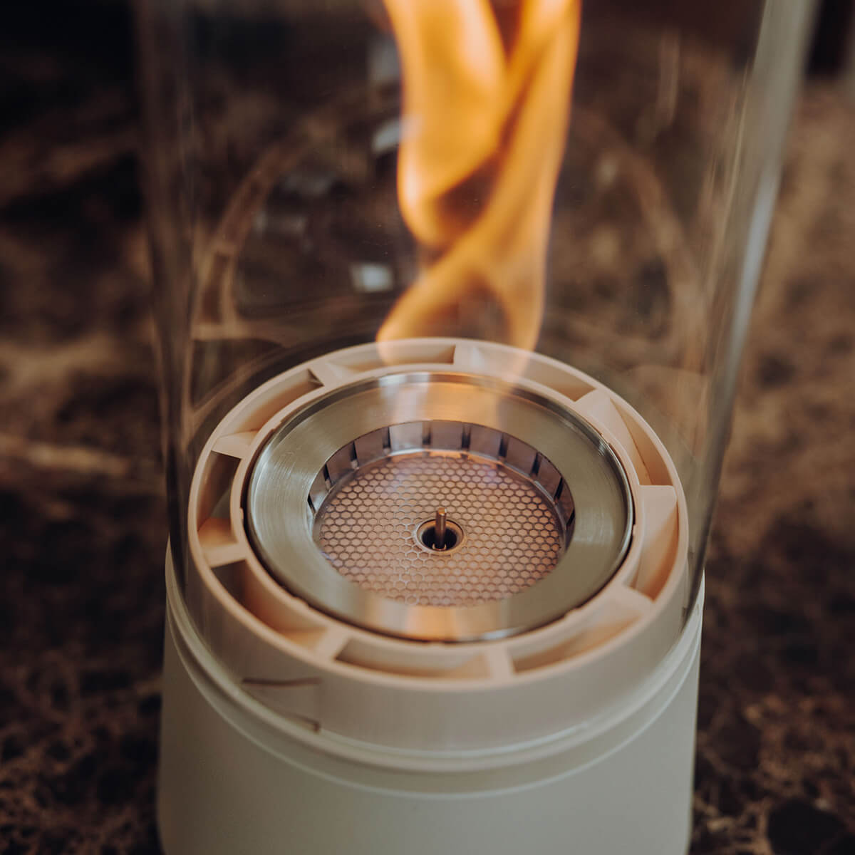 Ja. Die Spin air 1200 ist laborgeprüft, DIN EN 16647 zertifiziert und für den Betrieb im Innenraum freigegeben. Ein Sicherheitsventil verhindert unkontrolliertes Auslaufen des Brennstoffs, während der hitzebeständige Glaszylinder aus hochwertigem Borosilikatglas die Flamme zuverlässig abschirmt. So genießen Sie das Feuer bedenkenlos – mit maximaler Sicherheit.