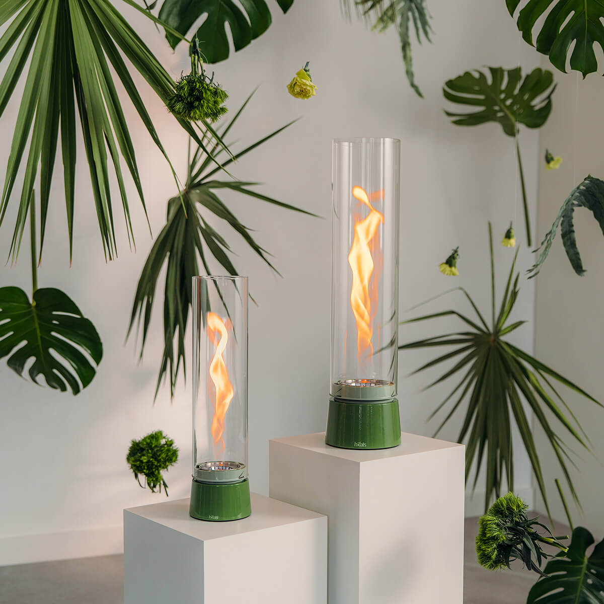 Besonders wohnlich wirkt das Tischfeuer mit Sockel in Eiche natur: Die feine Holzmaserung bringt ein Gefühl von Wärme und Behaglichkeit in Ihr Zuhause und setzt einen sanften Kontrast zu kühlen Materialien wie Beton oder Metall. Ein starkes Statement gelingt mit der Variante im All-Black-Look: Hier trifft ein mattschwarzer Sockel auf einen schwarz getönten Glaszylinder für ein besonders intensives Flammenbild.