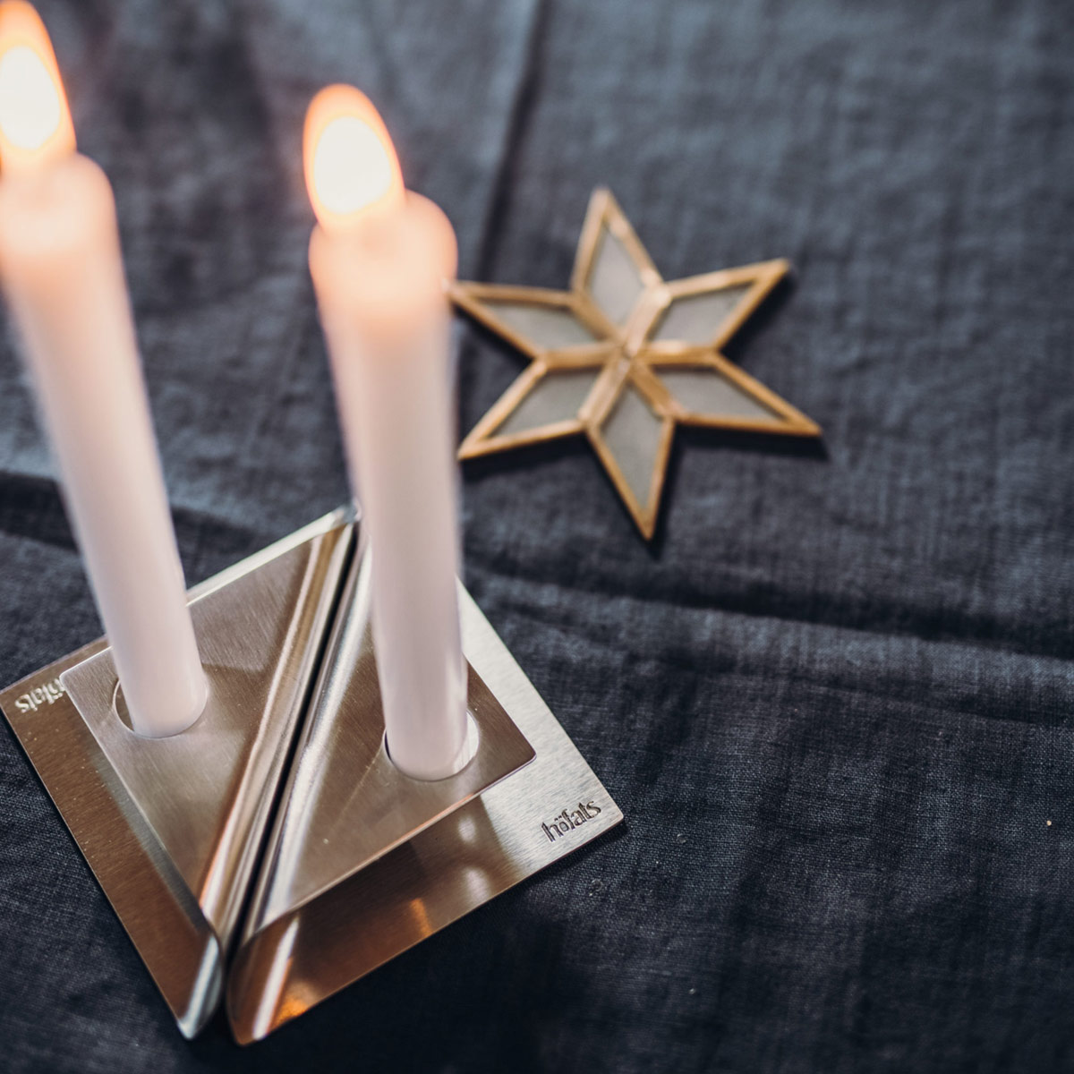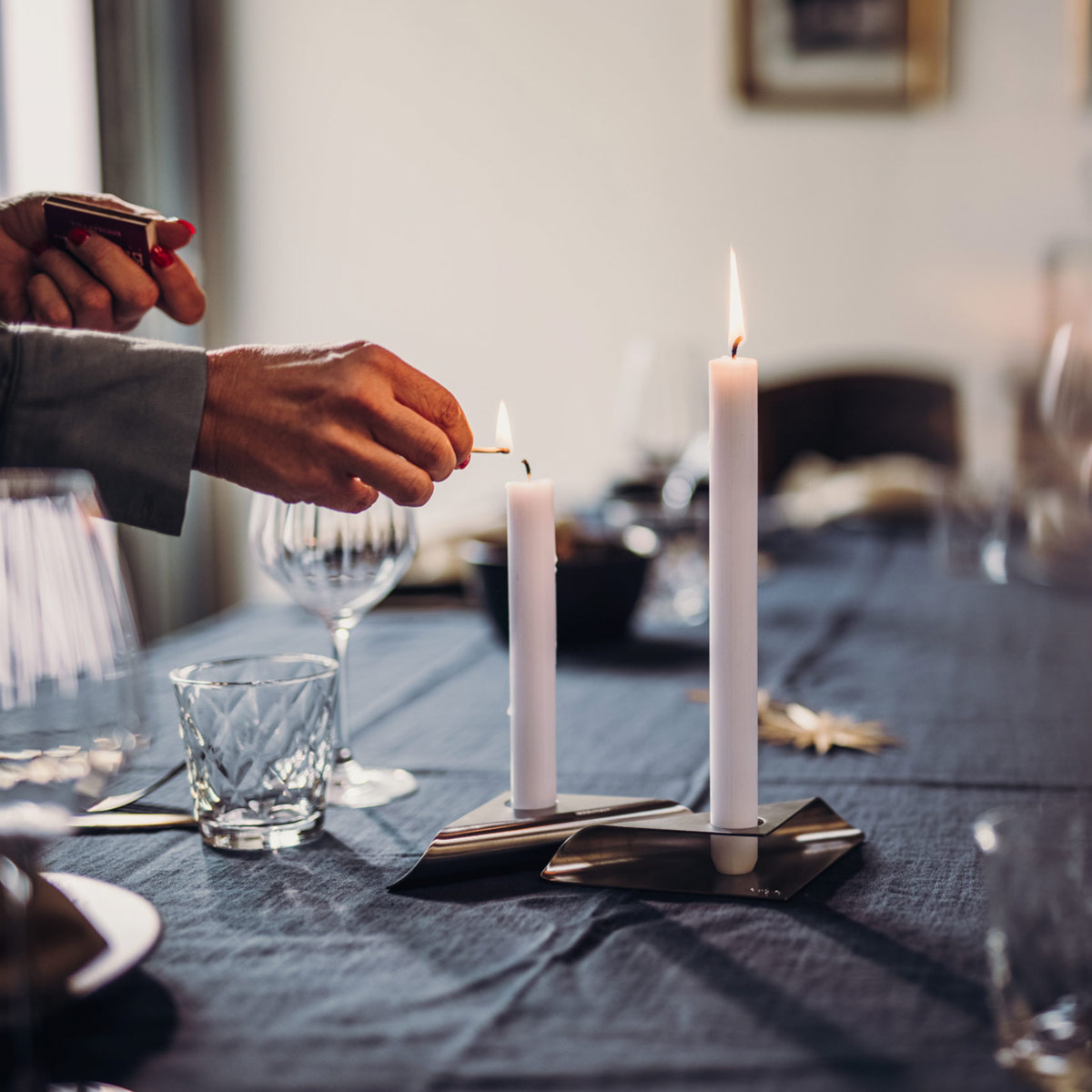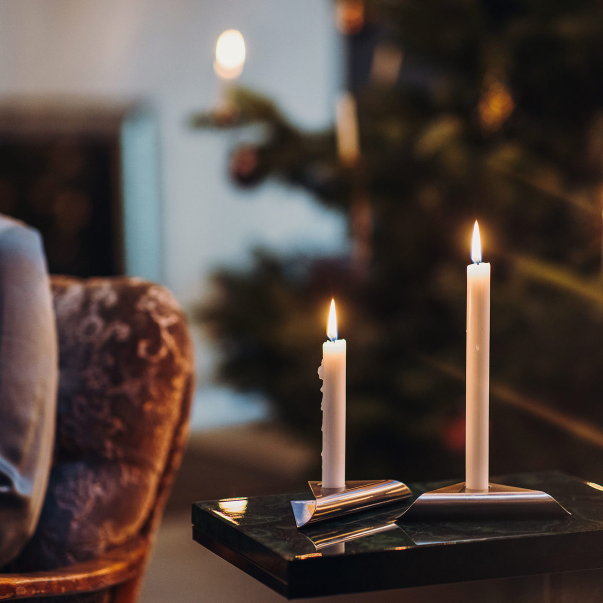 Höfats Square Candle Kerzenhalter, 2 Stück, Silber, mit Kerzen (nicht inbegriffen)