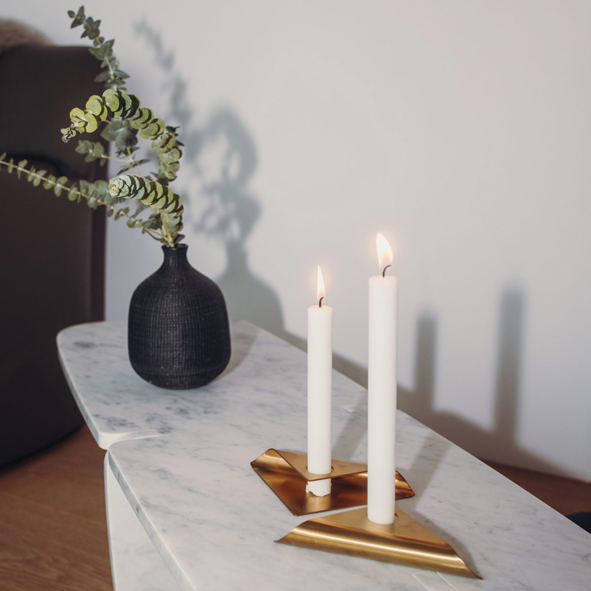 Höfats Square Candle Kerzenhalter, 2 Stück, Gold, mit Kerzen (nicht inbegriffen)