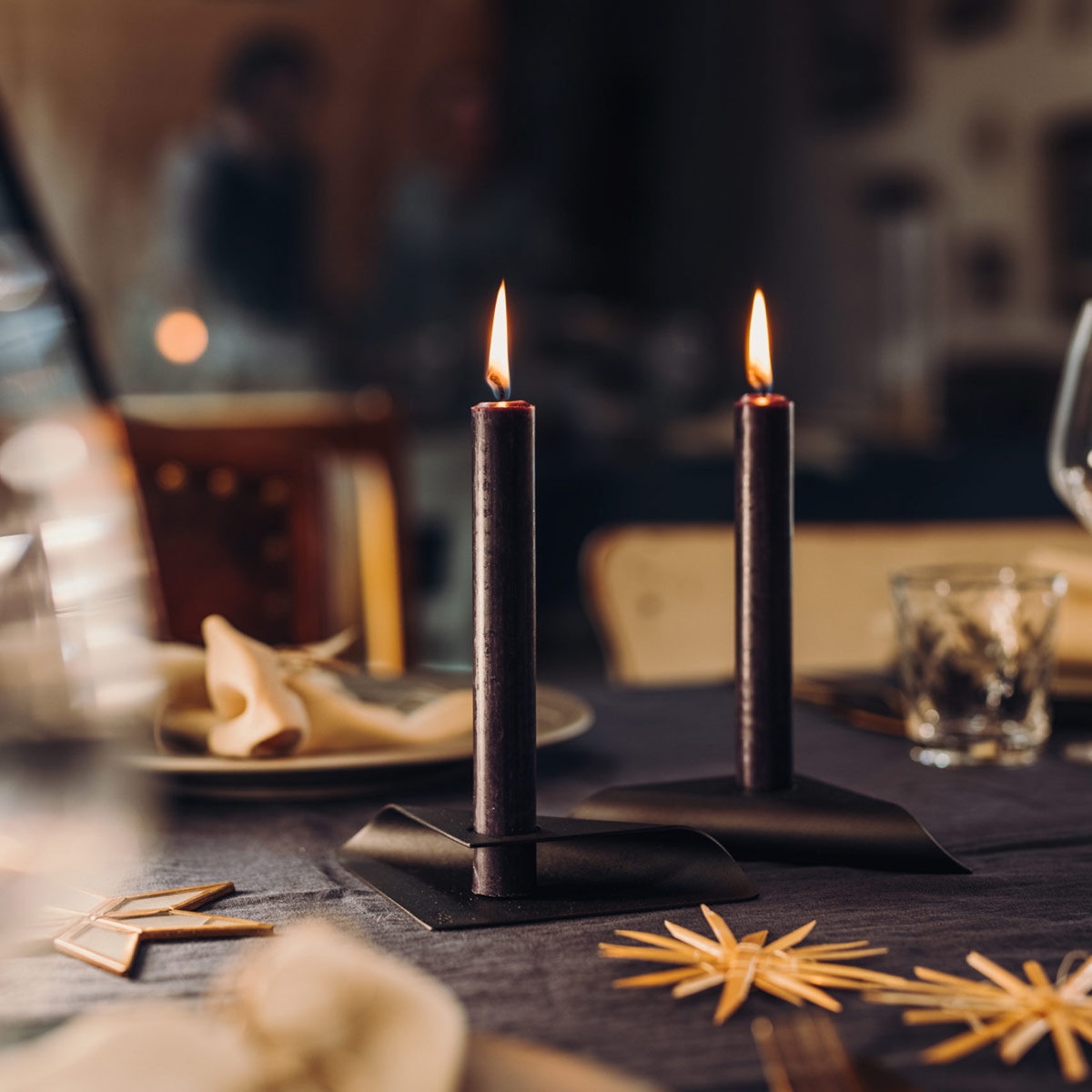 Höfats Square Candle Kerzenhalter, 2 Stück, schwarz, mit Kerzen (nicht inbegriffen)