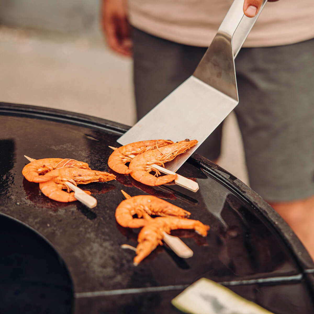 - Zum Wenden von Grillgut – selbst größerer und zerbrechlicher Speisen